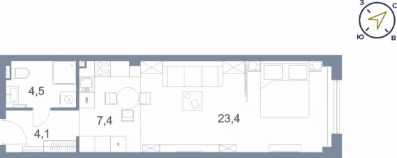 Арт. 100157035 ПРОДАЕТСЯ 1 квартира-студия с прихожей, общая площадь 34,5 кв.м , высокие потолки 3.3 м, что создает объем пространства, возможно сделать спальню на антресоли. Панорамные окна (с улицы сделана тонировка, что создает приватность в квартире).