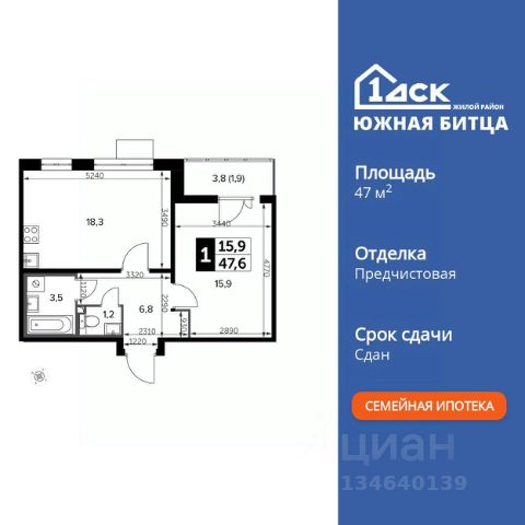 Прямая продажа от застройщика! Семейный жилой район класса Комфорт Плюс Продаётся 1-к квартира номер 561 общей площадью 25.2 кв.м. на 9-м этаже 22 этажного здания. Отделка Whitebox. Особенности квартиры: - Линейная планировка - максимальная функциональность и удобство. - Евроформат - просторное и удобное жилье с отличной планировкой. - Ниша под шкаф - компактное и удобное место для вещей. - Лоджия - уютное место для отдыха и тишины. Квартира с предчистовой отделкой (White box). Вам не придется заниматься черновыми и трудоёмкими работы, а чистовую отделку и дизайн - сделайте на свой вкус. Информация о комплексе: Сочетание свободного перемещения по внутреннней территории без машин и ощущения абсолютной безопасности благодаря надежным ограждениям - вот что отличает ЖК Южная Битца. На территории комплекса созданы все условия как для активного образа жизни, так и для спокойного времяпрепровождения. Свободно перемещайтесь по внутренней территории в безбарьерной среде! Продуманное зонирование во дворах позволяет отделить тихие зоны для родителей со спящими младенцами и тех, кто хочет почитать на свежем воздухе, от шумных игровых зон. Игровые зоны учитывают возраст детей. Площадки для детей старшего возраста вынесены за пределы дворов. Ощущение уютного дома должно начинаться с подъезда. Мы постарались предусмотреть все нюансы, чтобы наши лифты отвечали самым строгим современным требованиям. А наличие кладовых позволит вам поддерживать идеальный порядок и уют в вашей квартире! Транспортная доступность: В 3 км от МКАД в нескольких минутах езды до трех станций метро: Аннино, Бульвар Дмитрия Донского, улица Старокочаловская и станции МЦД2 - жд Бутово. Внутренняя инфраструктура: Для жителей жилого района "Южная Битца" доступна развитая инфраструктура близлежащих московских районов Чертаново, Южное, Бирюлёво Западное, Северное Бутово и Южное Бутово. Множество образовательных учреждений, объекты здравоохранения, торговые и развлекательные центры, кинотеатры, кафе, рестораны, парки.