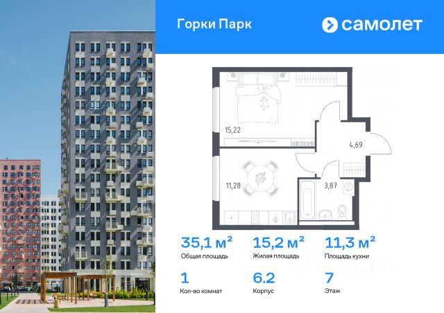 Строим кварталы для жизни с заботой о будущем. Предлагается 1-комнатная квартира комфорт-класса 34,72 кв.м в корпусе 8.2 на 11 этаже, в ЖК "Горки Парк" Квартира без отделки. Доступность опции "отделка" и возможность комплектации мебелью и декором уточняйте у застройщика. Приобрести квартиру возможно по специальным акциям от застройщика, с текущими условиями акций можно ознакомиться в блоке "Акций". Цена динамическая и может отличаться, уточняйте актуальность у застройщика. Уединенный жилой комплекс, где хочется остаться. До МКАДа всего 10 минут на авто, а прямо рядом с домами есть лес — идеально для прогулок, занятий спортом и медитаций. Фасады 1117-этажных корпусов дополняют яркие вставки — каждый дом особенный. На территории проекта появятся ФОК и поликлиника, детские сады и школы. Наслаждаться счастливой жизнью в квартале можно уже сейчас — здесь есть готовые дома, но при этом появляются и новые корпуса. "Горки Парк" — это: 1. 10 минут на машине до МКАДа 2. 20 минут на машине до метро "Домодедовская" и 18 минут — до аэропорта Домодедово 3. Пешеходные бульвары и пространства для отдыха 4. Выход в лесопарк с благоустроенными экотропами 5. Приватные дворы без машин 6. Экомаршрут в Коробовском лесопарке рядом с домом, который соединит кварталы: "Пригород Лесное", "Горки Парк" и "Богдановский Лес" 7. Запланировано 3 школы и 6 детских садов 8. Уже построили детский сад и школу со спортивным ядром, где смогут тренироваться жители квартала 9. Поликлиника и спорткомплекс внутри проекта 10. Магазины и кофейни на первых этажах 11. Игровые площадки и воркаут-зона 12. Прогулочная зона рядом с кварталом 13. Спортивно-игровой кластер 14. Площадки для занятий йогой и игры в пинг-понг — в части дворов 15. Рабочий остров и площадка для отдыха — в части дворов 16. Веревочный панда-парк — в будущем 17. Площадка для выгула собак 18. Балконы с панорамным остеклением 19. Увеличенные окна в квартирах 20. Входы на уровне земли 21. Места для хранения велосипедов и колясок