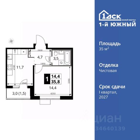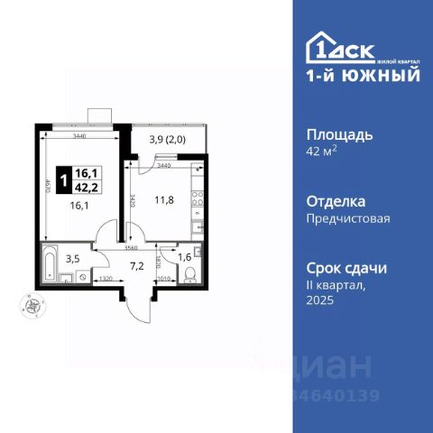 Прямая продажа от застройщика! Жилой Комплекс класса Комфорт Плюс. Продаётся 1-к квартира номер 42 общей площадью 42.1 кв.м. на 12-м этаже 24 этажного здания. Отделка Whitebox. Цена с учётом скидки. Особенности квартиры: - МЦД-5 в пешей доступности - Квартал с южным садом - Свои 3 детских сада и 2 большие школы - Линейная планировка - максимальная функциональность и удобство. - Гостевой санузел - комфорт и удобство для ваших гостей. - Раздельный санузел - больше удобства для всех членов семьи. - Просторная кухня - место для семейных ужинов и кулинарных экспериментов. - Просторная мягкая зона - комфорт и уют для отдыха всей семьи. - Возможность добавить спальное место - дополнительный комфорт для гостей. - Лоджия - уютное место для отдыха и тишины. Квартира с предчистовой отделкой (White box). Вам не придется заниматься черновыми и трудоёмкими работы, а чистовую отделку и дизайн - сделайте на свой вкус. Информация о комплексе: Одно из преимуществ проектов 1- ДСК большие застекленные лоджии. Другое преимущество честный евро-формат. Во всем проекте предусмотрена система Умный дом. В состав устанавливаемого пакета устройств входит: WiFi реле для управления группами потребителей, беспроводной кран перекрытия с эл. приводом, беспроводной сенсор протечки, Яндекс Станция Мини. Его расположение можно назвать удачным за счет транспортной доступности и близости к природным объектам. По соседству лес, а в каждом дворе плодовые деревья. Весной квартал окутывает бело-розовое облако: это цветут яблони, груши, сливы. К августу в воздух наполняется ароматом созревших плодов. Зимой среди покрытых инеем деревьев протянулась лыжня. Транспортная доступность: - Общественный транспорт: Действующая ж/д станция Булатниково (в перспективе будущая МДЦ D5) в пешей доступности, всего 10-12 минут. - Личный автотранспорт: Удобный выезд на трассу М4-Дон в сторону Москвы и области 850 м, до МКАД - 1 км Внутренняя инфраструктура: Красивые продуманные подъезды - еще одно преимущество проекта 1-й Южный. Вход в сквозные подъезды есть и с улицы, и со двора. Благодаря сплошному остеклению в них всегда светло и уютно. Подъезды расположены на уровне земли, поэтому и молодым родителям с коляской, и жильцам с ограниченными возможностями вход и выход неудобств не доставят. В помещении предусмотрено место под стойку ресепшен с выводом инженерных сетей. Если жильцы решат на общем собрании, что необходим охранник или консьерж, организовать для них рабочее место можно быстро и с минимальными затратами. В подъездах предусмотрены уборные для детей и взрослых. Колясочные в каждом подъезде позволяют поддерживать порядок и чистоту на этажах. На случай прогулки с четвероногим питомцем в непогоду в подъездах устроены лапомойки. Во дворах и на общественных территориях 1-ого Южного столько всего интересного для юных обитателей. Собственные 3 детских сада и 2 больших школы буквально под окнами Изюминка проекта - пешеходный бульвар-дендрарий, он идеален для се