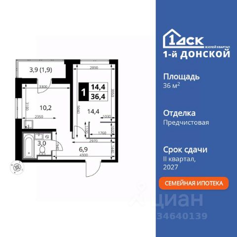 Прямая продажа от застройщика! Жилой Комплекс класса Комфорт Плюс. Продаётся 1-к квартира номер 537 общей площадью 35.7 кв.м. на 2-м этаже 24 этажного здания. Без отделки. Цена с учётом скидки. Особенности квартиры: - МЦД-5 в пешей доступности - Квартал с собственной набережной - Свои 2 детских сада и школа - Организуем показ в удобное для вас время! - Линейная планировка - максимальная функциональность и удобство. - Гардеробная - удобство для хранения и организации вещей. - Ниша под шкаф - компактное и удобное место для вещей. - Лоджия - уютное место для отдыха и тишины. Квартира без отделки. Чистый холст для воплощения интерьера вашей мечты. Информация о комплексе: ЖК "1-й Донской" в 7 км от МКАД: гармония городского комфорта и природы. Квартиры на 2-3 стороны света, форма секций и разная этажность создают динамичную архитектуру. Тёплая палитра фасадов и подсветка подчеркивают образ. Рядом - Ермолинский парк, Видновский лесопарк и Жуковский парк. Природа воздействует на все уровни восприятия: от видов до звуков и ароматов. Идеальный баланс для жизни в гармонии с окружающей средой. Транспортная доступность: Комплекс удобно расположен в 7 км от МКАД по трассе М-4 Дон (через Видное). Расстояние до Каширского шоссе составляет 12 км. Добраться до метро и центра Москвы позволяет развитая сеть маршрутов общественного наземного транспорта. Действующая ж/д станция Калинина Павелецкого направления в 15-17 минутах ходьбы (МЦД-5 в 2025-2026 гг). Внутренняя инфраструктура: "1-й Донской": продуманная среда в развивающемся районе. На территории - муниципальные школа и 2 детских сада, поликлиника, торговый центр с площадью для мероприятий. Сеть пешеходных маршрутов ведёт к магазинам и кафе, отделённым от дорог зелёными фито-стенами. Сквозные подъезды с панорамным остеклением и входами с улицы и двора наполнены светом. Всё для комфортной жизни в шаговой доступности, от повседневных нужд до общественных пространств. Квартира без отделки - чистый холст для вашего интерьера.