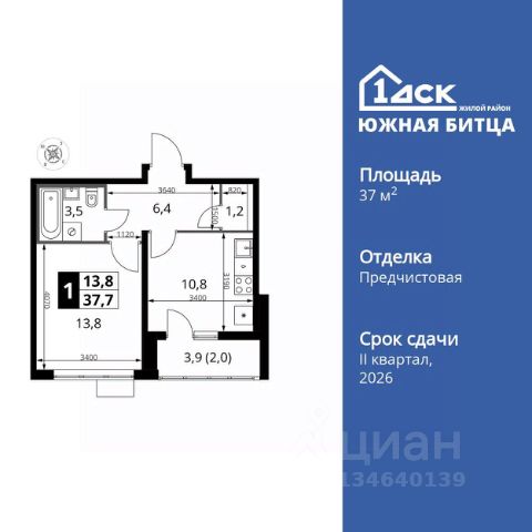 УСПЕЙ ПО СЕМЕЙНОЙ ИПОТЕКЕ БЕЗ НАЦЕНКИ! От 39 000 рублей в месяц! Прямая продажа от застройщика! Семейный жилой район класса Комфорт Плюс Продаётся 1-к квартира номер 645 общей площадью 38 кв.м. на 4-м этаже 22 этажного здания. Отделка Whitebox. Особенности квартиры: - Линейная планировка - максимальная функциональность и удобство. - Просторная кухня - место для семейных ужинов и кулинарных экспериментов. - Гардеробная - удобство для хранения и организации вещей. - Лоджия - уютное место для отдыха и тишины. Квартира с предчистовой отделкой (White box). Вам не придется заниматься черновыми и трудоёмкими работы, а чистовую отделку и дизайн - сделайте на свой вкус. Информация о комплексе: Сочетание свободного перемещения по внутреннней территории без машин и ощущения абсолютной безопасности благодаря надежным ограждениям - вот что отличает ЖК Южная Битца. На территории комплекса созданы все условия как для активного образа жизни, так и для спокойного времяпрепровождения. Свободно перемещайтесь по внутренней территории в безбарьерной среде! Продуманное зонирование во дворах позволяет отделить тихие зоны для родителей со спящими младенцами и тех, кто хочет почитать на свежем воздухе, от шумных игровых зон. Игровые зоны учитывают возраст детей. Площадки для детей старшего возраста вынесены за пределы дворов. Ощущение уютного дома должно начинаться с подъезда. Мы постарались предусмотреть все нюансы, чтобы наши лифты отвечали самым строгим современным требованиям. А наличие кладовых позволит вам поддерживать идеальный порядок и уют в вашей квартире! Транспортная доступность: В 3 км от МКАД в нескольких минутах езды до трех станций метро: Аннино, Бульвар Дмитрия Донского, улица Старокочаловская и станции МЦД2 - жд Бутово. Внутренняя инфраструктура: Для жителей жилого района "Южная Битца" доступна развитая инфраструктура близлежащих московских районов Чертаново, Южное, Бирюлёво Западное, Северное Бутово и Южное Бутово. Множество образовательных учреждений, объекты здравоохранения, торговые и развлекательные центры, кинотеатры, кафе, рестораны, парки.