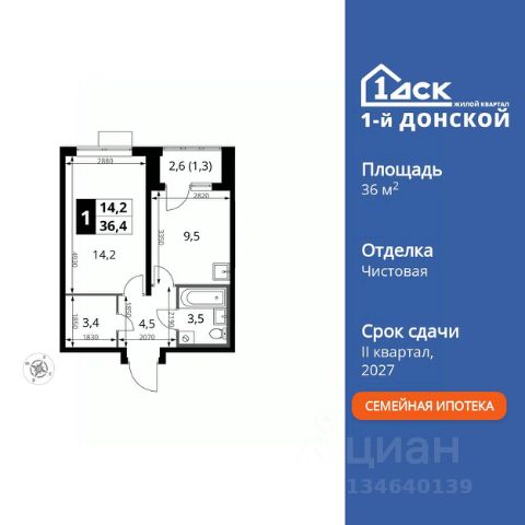 Прямая продажа от застройщика! Жилой Комплекс класса Комфорт Плюс. Продаётся 1-к квартира номер 763 общей площадью 36.4 кв.м. на 4-м этаже 24 этажного здания. Чистовая отделка. Цена с учётом скидки. Особенности квартиры: - МЦД-5 в пешей доступности - Квартал с собственной набережной - Свои 2 детских сада и школа - Организуем показ в удобное для вас время! - Линейная планировка - максимальная функциональность и удобство. - Гардеробная - удобство для хранения и организации вещей. - Лоджия - уютное место для отдыха и тишины. Квартира с чистовой отделкой. Раскройте свою индивидуальность в создании своего уникального проекта, а трудоемкий ремонт мы возьмем на себя! Вы идете в ногу со временем и предпочитаете современные, универсальные дизайнерские решения? Или вы любитель строгой лаконичной классики? Тогда наши интерьеры придутся вам по душе! Выбирайте то, что ближе лично Вам и реализуйте свои задумки вместе с нами! Информация о комплексе: ЖК "1-й Донской" в 7 км от МКАД: гармония городского комфорта и природы. Квартиры на 2-3 стороны света, форма секций и разная этажность создают динамичную архитектуру. Тёплая палитра фасадов и подсветка подчеркивают образ. Рядом - Ермолинский парк, Видновский лесопарк и Жуковский парк. Природа воздействует на все уровни восприятия: от видов до звуков и ароматов. Идеальный баланс для жизни в гармонии с окружающей средой. Транспортная доступность: Комплекс удобно расположен в 7 км от МКАД по трассе М-4 Дон (через Видное). Расстояние до Каширского шоссе составляет 12 км. Добраться до метро и центра Москвы позволяет развитая сеть маршрутов общественного наземного транспорта. Действующая ж/д станция Калинина Павелецкого направления в 15-17 минутах ходьбы (МЦД-5 в 2025-2026 гг). Внутренняя инфраструктура: "1-й Донской": продуманная среда в развивающемся районе. На территории - муниципальные школа и 2 детских сада, поликлиника, торговый центр с площадью для мероприятий. Сеть пешеходных маршрутов ведёт к магазинам и кафе, отделённым от дорог зелёными фито-стенами. Сквозные подъезды с панорамным остеклением и входами с улицы и двора наполнены светом. Всё для комфортной жизни в шаговой доступности, от повседневных нужд до общественных пространств. Квартира с чистовой отделкой: ваш стиль без ремонта. Выбирайте современный дизайн или классику - мы воплотим ваши идеи. Готовые интерьеры для уникального дома.