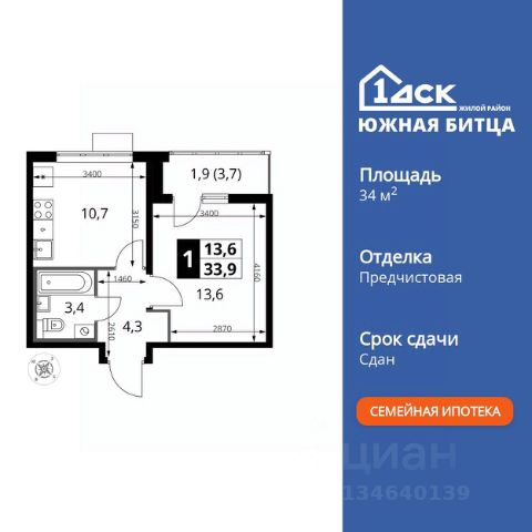 Прямая продажа от застройщика! Семейный жилой район класса Комфорт Плюс Продаётся 1-к квартира номер 19 общей площадью 34 кв.м. на 4-м этаже 22 этажного здания. Предчистовая отделка. Цена с учётом скидки. Особенности квартиры: - Организуем показ в удобное для вас время! - Линейная планировка - максимальная функциональность и удобство. - Просторная кухня - место для семейных ужинов и кулинарных экспериментов. - Ниша под шкаф - компактное и удобное место для вещей. - Лоджия - уютное место для отдыха и тишины. Квартира с предчистовой отделкой. Вам не придется заниматься черновыми и трудоёмкими работы, а чистовую отделку и дизайн - сделайте на свой вкус. Информация о комплексе: ЖК "Южная Битца": безопасная территория без машин с продуманным зонированием. Тихие и игровые зоны разделены, дворы - безбарьерная среда для всех возрастов. Современные лифты и кладовые для порядка и уюта. Транспортная доступность: В 3 км от МКАД в нескольких минутах езды до трех станций метро: Аннино, Бульвар Дмитрия Донского, улица Старокочаловская и станции МЦД2 - ЖД Бутово. Внутренняя инфраструктура: Для жителей жилого района "Южная Битца" доступна развитая инфраструктура близлежащих московских районов Чертаново, Южное, Бирюлёво Западное, Северное Бутово и Южное Бутово. Множество образовательных учреждений, объекты здравоохранения, торговые и развлекательные центры, кинотеатры, кафе, рестораны, парки.