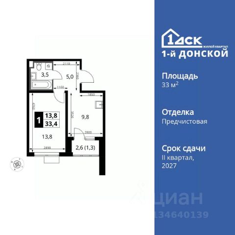 Прямая продажа от застройщика. Продаётся 1-комнатная квартира общей площадью 33.30 м² с предчистовой отделкой в ЖК "У реки. Эко Видное 2.0" на 5-м этаже 17 этажного корпуса Левитан. Все корпуса введены в эксплуатацию. Выдача ключей - II кв. 2025г. Семнадцатиэтажный корпус "Левитан" состоит из 13 секций, образующих в плане закрытый периметр двора. Эко-повестка и комфорт — это формат осознанной жизни, разработанный "Бюро А4" для благоустройства корпуса "Левитан". В проекте развиваются две темы: образ реки и настроения пейзажей Левитана которые раскрываются через четыре функциональные зоны. ЖК "У реки" — жилой микрорайон в Ленинском районе Подмосковья, в городе Видное. Архитектурные решения проекта разработаны бюро ADM, которое известно своими работами по созданию элитных объектов в столице. В проекте реализована продуманная европейская концепция благоустройства, включающая прогулочную набережную. О проекте: - 5 корпусов переменной этажности); - 8 км от МКАД, 30 минут до метро "Домодедовская", в 2025 года запланировано открытие станции МЦД-5 (дорога по Павелецкого вокзала займёт 30 минут); - Безопасные дворы с детскими и спортивными площадками для разных возрастов; - Собственная набережная с променадом, местами для пикников и рыбалки; - Два детских сада и школа на территории; - Развитая инфраструктура района; Компания MR предлагает своим клиентам специальные условия приобретения квартир в рамках программ ипотечного кредитования от банков-партнеров.