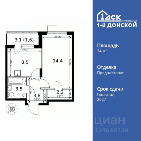 Прямая продажа от застройщика! Жилой Комплекс класса Комфорт Плюс. Продаётся 1-к квартира номер 51 общей площадью 34 кв.м. на 6-м этаже 24 этажного здания. Отделка Whitebox. Цена с учётом скидки. Особенности квартиры: - МЦД-5 в пешей доступности - Квартал с собственной набережной - Свои 2 детских сада и школа - Линейная планировка - максимальная функциональность и удобство. - Гардеробная - удобство для хранения и организации вещей. - Ниша под шкаф - компактное и удобное место для вещей. - Лоджия - уютное место для отдыха и тишины. Квартира с предчистовой отделкой (White box). Вам не придется заниматься черновыми и трудоёмкими работы, а чистовую отделку и дизайн - сделайте на свой вкус. Информация о комплексе: Комплекс 1-й Донской расположен в 7 км от МКАД по трассе М-4 Дон. В нем сочетаются все плюсы комфортной городской среды и природного окружения. В проекте достаточно большой процент квартир, выходящих на 2-3 стороны света. Секции-маяки формируют у зданий визуальную L-форму, что придает застройке структуру и ритмику объемов. На ощущение динамики работает и разная этажность зданий. Теплая цветовая палитра фасадов отражает природу Дона. Вечерами дома преображаются благодаря архитектурной подсветке, выгодно выделяясь на городском фоне. Природа оказывает положительное влияние на человека на всех уровнях восприятия: через зрение, запахи, звуки, тактильные ощущения. Неподалеку от ЖК Первый Донской: Ермолинский парк, Видновский лесопарк, Жуковский парк Транспортная доступность: Комплекс удобно расположен в 7 км от МКАД по трассе М-4 Дон (через Видное). Расстояние до Каширского шоссе составляет 12 км. Добраться до метро и центра Москвы позволяет развитая сеть маршрутов общественного наземного транспорта. Действующая ж/д станция Калинина Павелецкого направления в 15-17 минутах ходьбы (МЦД-5 в 2025-2026 гг). Внутренняя инфраструктура: Проект 1-й Донской соседствует с бурно развивающимся районом, основная инфраструктура которого уже сложилась. В строительстве современных жилых комплексов в округе есть свои плюсы: здесь формируется продуманная и комфортная городская среда. Что касается внутренней инфраструктуры, на территории квартала будут расположены собственные муниципальные 2 детских садика и школа, которые помогут совместить приятное с полезным. Территория комплекса пронизана целой сетью живописных пешеходных маршрутов, позволяющих попасть в любой уголок района. Основные пути, как водится, "торговые". Они проходят вдоль магазинов, кафе и других представителей коммерции и отделяются от проезжей части зеленой "фито" - стеной. Среди крупных социальных объектов предусмотрены своя поликлиника и торговый центр с примыкающей площадью для общественных мероприятий. Уют начинается с продуманного подъезда. Сквозные подъезды наполнены светом благодаря сплошному остеклению. Вход в них есть и с улицы, и со двора.