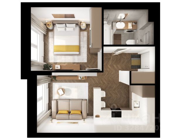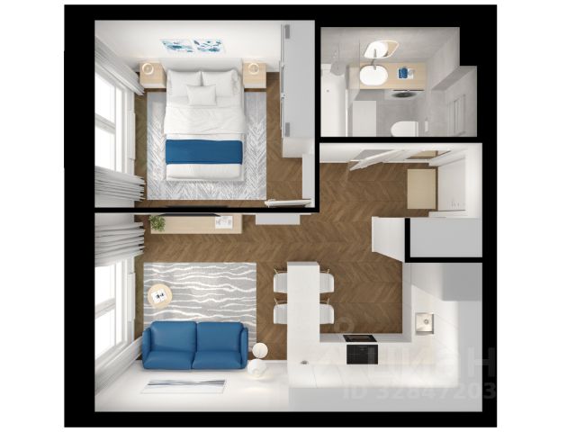 Продаётся 1-комнатная квартира 412, площадью 32,96 м², на 6 этаже в ЖК "Живописный" корпус 2. Стоимость — от 7056779 руб. Квартира без отделки, планировка односторонняя, окна на улицу.