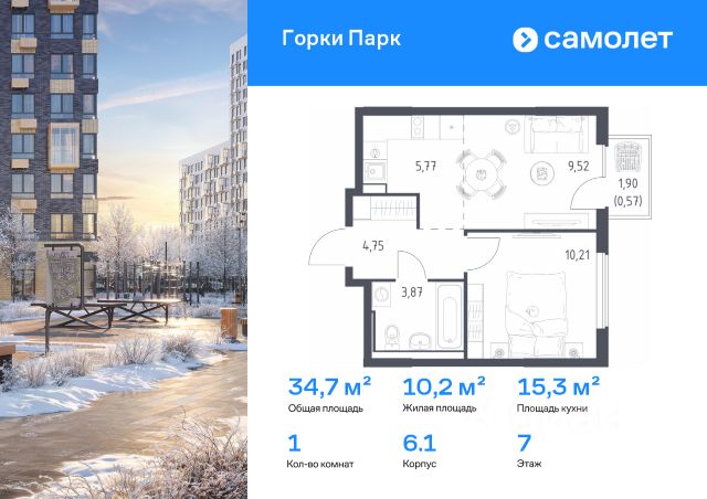 Строим кварталы для жизни с заботой о будущем. Предлагается 1-комнатная квартира комфорт-класса 34,72 кв.м в корпусе 8.2 на 7 этаже, в ЖК "Горки Парк" Квартира без отделки. Доступность опции "отделка" и возможность комплектации мебелью и декором уточняйте у застройщика. Приобрести квартиру возможно по специальным акциям от застройщика, с текущими условиями акций можно ознакомиться в блоке "Акций". Цена динамическая и может отличаться, уточняйте актуальность у застройщика. Уединенный жилой комплекс, где хочется остаться. До МКАДа всего 10 минут на авто, а прямо рядом с домами есть лес — идеально для прогулок, занятий спортом и медитаций. Фасады 1117-этажных корпусов дополняют яркие вставки — каждый дом особенный. На территории проекта появятся ФОК и поликлиника, детские сады и школы. Наслаждаться счастливой жизнью в квартале можно уже сейчас — здесь есть готовые дома, но при этом появляются и новые корпуса. "Горки Парк" — это: 1. 10 минут на машине до МКАДа 2. 20 минут на машине до метро "Домодедовская" и 18 минут — до аэропорта Домодедово 3. Пешеходные бульвары и пространства для отдыха 4. Выход в лесопарк с благоустроенными экотропами 5. Приватные дворы без машин 6. Экомаршрут в Коробовском лесопарке рядом с домом, который соединит кварталы: "Пригород Лесное", "Горки Парк" и "Богдановский Лес" 7. Запланировано 3 школы и 6 детских садов 8. Уже построили детский сад и школу со спортивным ядром, где смогут тренироваться жители квартала 9. Поликлиника и спорткомплекс внутри проекта 10. Магазины и кофейни на первых этажах 11. Игровые площадки и воркаут-зона 12. Прогулочная зона рядом с кварталом 13. Спортивно-игровой кластер 14. Площадки для занятий йогой и игры в пинг-понг — в части дворов 15. Рабочий остров и площадка для отдыха — в части дворов 16. Веревочный панда-парк — в будущем 17. Площадка для выгула собак 18. Балконы с панорамным остеклением 19. Увеличенные окна в квартирах 20. Входы на уровне земли 21. Места для хранения велосипедов и колясок