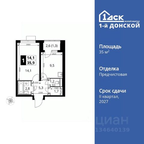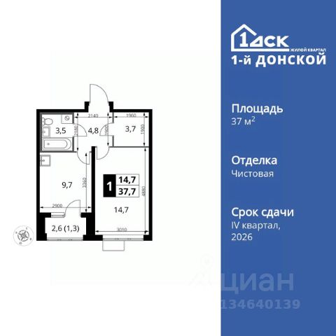 1-комнатная квартира в ЖК "Первый квартал" в Видном — это квартира с объединённой кухней-гостиной и отдельной спальней. Однокомнатная может быть укомплектована тёплой лоджией, где удобно разместить рабо