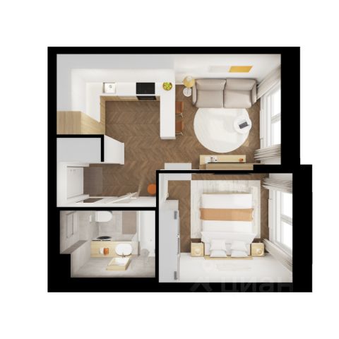 Продаётся 1-комнатная квартира 338, площадью 35,95 м², на 8 этаже в ЖК "Живописный" корпус 2. Стоимость — от 7517943 руб. Квартира без отделки, планировка односторонняя, окна на улицу.