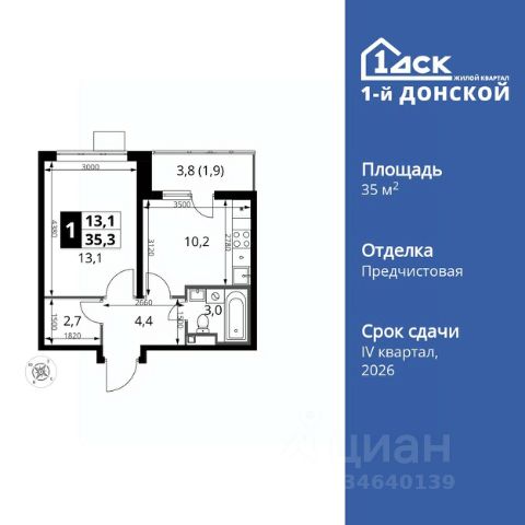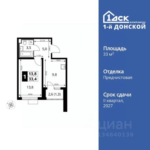 Прямая продажа от застройщика! Жилой Комплекс класса Комфорт Плюс. Продаётся 1-к квартира номер 81 общей площадью 33.5 кв.м. на 9-м этаже 24 этажного здания. Без отделки. Особенности квартиры: - МЦД-5 в пешей доступности - Квартал с собственной набережной - Свои 2 детских сада и школа - Линейная планировка - максимальная функциональность и удобство. - Ниша под шкаф - компактное и удобное место для вещей. - Лоджия - уютное место для отдыха и тишины. Информация о комплексе: Комплекс 1-й Донской расположен в 7 км от МКАД по трассе М-4 Дон. В нем сочетаются все плюсы комфортной городской среды и природного окружения. В проекте достаточно большой процент квартир, выходящих на 2-3 стороны света. Секции-маяки формируют у зданий визуальную L-форму, что придает застройке структуру и ритмику объемов. На ощущение динамики работает и разная этажность зданий. Теплая цветовая палитра фасадов отражает природу Дона. Вечерами дома преображаются благодаря архитектурной подсветке, выгодно выделяясь на городском фоне. Природа оказывает положительное влияние на человека на всех уровнях восприятия: через зрение, запахи, звуки, тактильные ощущения. Неподалеку от ЖК Первый Донской: Ермолинский парк, Видновский лесопарк, Жуковский парк Транспортная доступность: Комплекс удобно расположен в 7 км от МКАД по трассе М-4 Дон (через Видное). Расстояние до Каширского шоссе составляет 12 км. Добраться до метро и центра Москвы позволяет развитая сеть маршрутов общественного наземного транспорта. Действующая ж/д станция Калинина Павелецкого направления в 15-17 минутах ходьбы (МЦД-5 в 2025-2026 гг). Внутренняя инфраструктура: Проект 1-й Донской соседствует с бурно развивающимся районом, основная инфраструктура которого уже сложилась. В строительстве современных жилых комплексов в округе есть свои плюсы: здесь формируется продуманная и комфортная городская среда. Что касается внутренней инфраструктуры, на территории квартала будут расположены собственные муниципальные 2 детских садика и школа, которые помогут совместить приятное с полезным. Территория комплекса пронизана целой сетью живописных пешеходных маршрутов, позволяющих попасть в любой уголок района. Основные пути, как водится, "торговые". Они проходят вдоль магазинов, кафе и других представителей коммерции и отделяются от проезжей части зеленой "фито" - стеной. Среди крупных социальных объектов предусмотрены своя поликлиника и торговый центр с примыкающей площадью для общественных мероприятий. Уют начинается с продуманного подъезда. Сквозные подъезды наполнены светом благодаря сплошному остеклению. Вход в них есть и с улицы, и со двора.