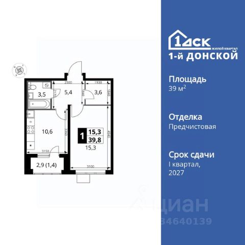 Прямая продажа от застройщика! Жилой Комплекс класса Комфорт Плюс. Продаётся 1-к квартира номер 318 общей площадью 39.8 кв.м. на 9-м этаже 24 этажного здания. Отделка Whitebox. Особенности квартиры: - МЦД-5 в пешей доступности - Квартал с собственной набережной - Свои 2 детских сада и школа - Линейная планировка - максимальная функциональность и удобство. - Линейная кухня - функциональность и практичность в одном решении. - Гардеробная - удобство для хранения и организации вещей. - Лоджия - уютное место для отдыха и тишины. Квартира с предчистовой отделкой (White box). Вам не придется заниматься черновыми и трудоёмкими работы, а чистовую отделку и дизайн - сделайте на свой вкус. Информация о комплексе: Комплекс 1-й Донской расположен в 7 км от МКАД по трассе М-4 Дон. В нем сочетаются все плюсы комфортной городской среды и природного окружения. В проекте достаточно большой процент квартир, выходящих на 2-3 стороны света. Секции-маяки формируют у зданий визуальную L-форму, что придает застройке структуру и ритмику объемов. На ощущение динамики работает и разная этажность зданий. Теплая цветовая палитра фасадов отражает природу Дона. Вечерами дома преображаются благодаря архитектурной подсветке, выгодно выделяясь на городском фоне. Природа оказывает положительное влияние на человека на всех уровнях восприятия: через зрение, запахи, звуки, тактильные ощущения. Неподалеку от ЖК Первый Донской: Ермолинский парк, Видновский лесопарк, Жуковский парк Транспортная доступность: Комплекс удобно расположен в 7 км от МКАД по трассе М-4 Дон (через Видное). Расстояние до Каширского шоссе составляет 12 км. Добраться до метро и центра Москвы позволяет развитая сеть маршрутов общественного наземного транспорта. Действующая ж/д станция Калинина Павелецкого направления в 15-17 минутах ходьбы (МЦД-5 в 2025-2026 гг). Внутренняя инфраструктура: Проект 1-й Донской соседствует с бурно развивающимся районом, основная инфраструктура которого уже сложилась. В строительстве современных жилых комплексов в округе есть свои плюсы: здесь формируется продуманная и комфортная городская среда. Что касается внутренней инфраструктуры, на территории квартала будут расположены собственные муниципальные 2 детских садика и школа, которые помогут совместить приятное с полезным. Территория комплекса пронизана целой сетью живописных пешеходных маршрутов, позволяющих попасть в любой уголок района. Основные пути, как водится, "торговые". Они проходят вдоль магазинов, кафе и других представителей коммерции и отделяются от проезжей части зеленой "фито" - стеной. Среди крупных социальных объектов предусмотрены своя поликлиника и торговый центр с примыкающей площадью для общественных мероприятий. Уют начинается с продуманного подъезда. Сквозные подъезды наполнены светом благодаря сплошному остеклению. Вход в них есть и с улицы, и со двора.