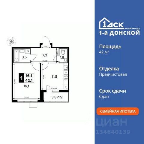 Прямая продажа от застройщика! Жилой Комплекс класса Комфорт Плюс. Продаётся 1-к квартира номер 614 общей площадью 35.7 кв.м. на 9-м этаже 24 этажного здания. Без отделки. Цена с учётом скидки. Особенности квартиры: - МЦД-5 в пешей доступности - Квартал с собственной набережной - Свои 2 детских сада и школа - Организуем показ в удобное для вас время! - Линейная планировка - максимальная функциональность и удобство. - Гардеробная - удобство для хранения и организации вещей. - Ниша под шкаф - компактное и удобное место для вещей. - Лоджия - уютное место для отдыха и тишины. Квартира без отделки. Чистый холст для воплощения интерьера вашей мечты. Информация о комплексе: ЖК "1-й Донской" в 7 км от МКАД: гармония городского комфорта и природы. Квартиры на 2-3 стороны света, форма секций и разная этажность создают динамичную архитектуру. Тёплая палитра фасадов и подсветка подчеркивают образ. Рядом - Ермолинский парк, Видновский лесопарк и Жуковский парк. Природа воздействует на все уровни восприятия: от видов до звуков и ароматов. Идеальный баланс для жизни в гармонии с окружающей средой. Транспортная доступность: Комплекс удобно расположен в 7 км от МКАД по трассе М-4 Дон (через Видное). Расстояние до Каширского шоссе составляет 12 км. Добраться до метро и центра Москвы позволяет развитая сеть маршрутов общественного наземного транспорта. Действующая ж/д станция Калинина Павелецкого направления в 15-17 минутах ходьбы (МЦД-5 в 2025-2026 гг). Внутренняя инфраструктура: "1-й Донской": продуманная среда в развивающемся районе. На территории - муниципальные школа и 2 детских сада, поликлиника, торговый центр с площадью для мероприятий. Сеть пешеходных маршрутов ведёт к магазинам и кафе, отделённым от дорог зелёными фито-стенами. Сквозные подъезды с панорамным остеклением и входами с улицы и двора наполнены светом. Всё для комфортной жизни в шаговой доступности, от повседневных нужд до общественных пространств. Квартира без отделки - чистый холст для вашего интерьера.