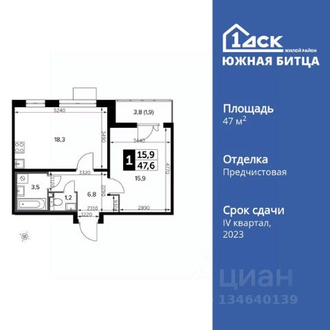 Прямая продажа от застройщика! Семейный жилой район класса Комфорт Плюс Продаётся 1-к квартира номер 62 общей площадью 47.7 кв.м. на 17-м этаже 20 этажного дома. Отделка Whitebox. Цена с учётом скидки! Особенности квартиры: - Линейная планировка - максимальная функциональность и удобство. - Раздельный санузел - больше удобства для всех членов семьи. - Евроформат - просторное и удобное жилье с отличной планировкой. - Просторная кухня - место для семейных ужинов и кулинарных экспериментов. - Ниша под шкаф - компактное и удобное место для вещей. - Лоджия - уютное место для отдыха и тишины. - Панорамное остекление лоджии - открывает вид на окружающий мир. Квартира с предчистовой отделкой (White box). Вам не придется заниматься черновыми и трудоёмкими работы, а чистовую отделку и дизайн - сделайте на свой вкус. Информация о комплексе: Сочетание свободного перемещения по внутреннней территории без машин и ощущения абсолютной безопасности благодаря надежным ограждениям - вот что отличает ЖК Южная Битца. На территории комплекса созданы все условия как для активного образа жизни, так и для спокойного времяпрепровождения. Свободно перемещайтесь по внутренней территории в безбарьерной среде! Продуманное зонирование во дворах позволяет отделить тихие зоны для родителей со спящими младенцами и тех, кто хочет почитать на свежем воздухе, от шумных игровых зон. Игровые зоны учитывают возраст детей. Площадки для детей старшего возраста вынесены за пределы дворов. Ощущение уютного дома должно начинаться с подъезда. Мы постарались предусмотреть все нюансы, чтобы наши лифты отвечали самым строгим современным требованиям. А наличие кладовых позволит вам поддерживать идеальный порядок и уют в вашей квартире! Транспортная доступность: В 3 км от МКАД в нескольких минутах езды до трех станций метро: Аннино, Бульвар Дмитрия Донского, улица Старокочаловская и станции МЦД2 - жд Бутово. Внутренняя инфраструктура: Для жителей жилого района "Южная Битца" доступна развитая инфраструктура близлежащих московских районов Чертаново, Южное, Бирюлёво Западное, Северное Бутово и Южное Бутово. Множество образовательных учреждений, объекты здравоохранения, торговые и развлекательные центры, кинотеатры, кафе, рестораны, парки.