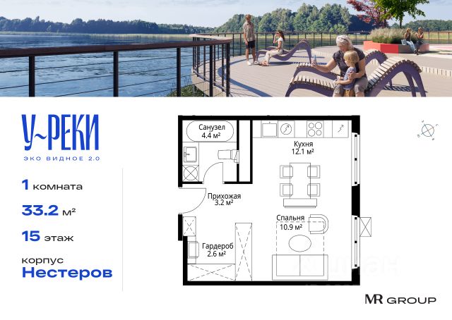 Прямая продажа от застройщика. Продаётся 1-комнатная квартира общей площадью 32 м² с предчистовой отделкой в ЖК "У реки. Эко Видное 2.0" на 11-м этаже корпуса Нестеров. Все корпуса введены в эксплуатацию. Выдача ключей - I кв. 2025г. Жилой комплекс "У реки" - уникальный проект комфорт-класса, в котором применяются стандарты строительства и сервиса MR Group, характерные для проектов девелопера бизнес и премиум-классов. 17-этажный корпус "Нестеров" расположится на живописном берегу реки Купелинка. Из его квартир откроются захватывающие виды на реку и лес на её противоположном берегу. О проекте: - 5 корпусов переменной этажности; - 8 км от МКАД, 30 минут до метро "Домодедовская", в 2025 года запланировано открытие станции МЦД-5 (дорога по Павелецкого вокзала займёт 30 минут); - Безопасные дворы с детскими и спортивными площадками для разных возрастов; - Собственная набережная с променадом, местами для пикников и рыбалки; - Два детских сада и школа на территории; - Развитая инфраструктура района; - Отделка MR Base (white box) Компания MR Group предлагает своим клиентам специальные условия приобретения квартир в рамках программ ипотечного кредитования от банков-партнеров. 1-комнатная квартира в квартале Центральный в микрорайоне Купелинка.