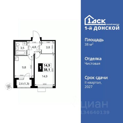 Продаётся с кладовой. Квартира с кухней-гостиной и одной спальней в "Первом квартале". Особенности планировки: без отделки, двухуровневая, терраса, балкон, терраса на крыше. Квартиру можно купить онлайн. В квартире выполнена отделка "под чистовую". Установлены окна с двойным стеклопакетом, радиаторы отопления с терморегуляторами. На полу цементно-песчаная стяжка. В квартиры заведены кабели для интернета и ТВ. Входная сейф-дверь не требует замены. Организован поквартирный учёт энергоресурсов (водоснабжение, отопление, электричество). Дом сдается во 2 квартале 2024 года. Проект "Первый квартал" строится в подмосковном городе "Видное" 6 км от МКАД. Рядом с проектом находится остановка общественного транспорта. Маршрутные такси едут до станций метро "Домодедовская", "Кантемировская", "Аннино". От ж/д ст. "Расторгуево" 30 минут до центра Москвы. Застройщик компания Брусника. Собственная инфраструктура "Первого квартала" включает в себя общеобразовательную школу, детский сад, а также магазины, предприятия услуг и офисные помещения, располагающиеся на первых этажах зданий. В шаговой доступности находятся: четыре школы, Видновская гимназия, начальная школа "Созвездие", супермаркеты "Пятерочка", "Перекресток" и "Виктория", рынок "Красный камень", бассейн "Дельфин". Объявление от застройщика. Ипотека, материнский капитал, военная ипотека. Обмен (или Trade-in) — один из способов. Обмен подойдёт, если вы хотите поменять старую квартиру на новую с большей или равной площадью. Получить одобрение ипотеки или рассрочку, а также осуществить обмен квартиры можно онлайн. Запишитесь на онлайн презентацию по телефону или на сайте. ОБЪЯВЛЕНИЕ ОТ ЗАСТРОЙЩИКА. Покупка квартиры защищена банком. Квартиру можно купить онлайн. ЖК "Первый квартал" расположен в городе Видное Московской области. Это 6 домов переменной этажности от 5 до 14 этажей с закрытыми дворами без машин, детскими и спортивными площадками. Проект застройщика Брусника находится в Ленинском районе в 6 км от МКАД, рядом с Ермолинским парком и рекой Купелинка. До аэропорта Домодедово около получаса езды на автомобиле. В районе уже сформированная инфраструктура: четыре детских сада, две школы, торговые центры, продуктовые магазины, остановки общественного транспорта. Рядом с ЖК "Первый квартал" находится конечная остановка маршрутных такси. От неё можно добраться до четырех станций метро — "Домодедовская", "Орехово", "Аннино", "Красногвардейская", и железнодорожной станции "Расторгуево". В проекте развития территории — строительство отдельного выезда на М4 Дон. В перспективе в жилом районе будет собственный детский сад, школа, поликлиника и два крытых паркинга. Вблизи "Первого квартала" — два развитых жилых района: микрорайон "Купелинка", ЖК "Эко Видное", ЖК "Видный". 1-комнатная квартира в ЖК "Первый квартал" в Видном — это квартира с объединённой кухней-гостиной и отдельной спальней. Однокомнатная может быть укомплектована тёплой лоджией, где удобно разместить рабо