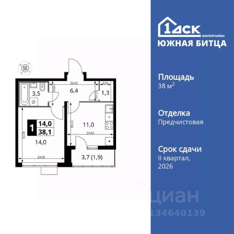 Прямая продажа от застройщика! Семейный жилой район класса Комфорт Плюс Продаётся 1-к квартира номер 34 общей площадью 38.1 кв.м. на 10-м этаже 21 этажного здания. Чистовая отделка. Цена с учётом скидки. Особенности квартиры: - Линейная планировка - максимальная функциональность и удобство. - Просторная кухня - место для семейных ужинов и кулинарных экспериментов. - Гардеробная - удобство для хранения и организации вещей. - Лоджия - уютное место для отдыха и тишины. - Панорамное остекление лоджии - открывает вид на окружающий мир. Информация о комплексе: Сочетание свободного перемещения по внутреннней территории без машин и ощущения абсолютной безопасности благодаря надежным ограждениям - вот что отличает ЖК Южная Битца. На территории комплекса созданы все условия как для активного образа жизни, так и для спокойного времяпрепровождения. Свободно перемещайтесь по внутренней территории в безбарьерной среде! Продуманное зонирование во дворах позволяет отделить тихие зоны для родителей со спящими младенцами и тех, кто хочет почитать на свежем воздухе, от шумных игровых зон. Игровые зоны учитывают возраст детей. Площадки для детей старшего возраста вынесены за пределы дворов. Ощущение уютного дома должно начинаться с подъезда. Мы постарались предусмотреть все нюансы, чтобы наши лифты отвечали самым строгим современным требованиям. А наличие кладовых позволит вам поддерживать идеальный порядок и уют в вашей квартире! Транспортная доступность: В 3 км от МКАД в нескольких минутах езды до трех станций метро: Аннино, Бульвар Дмитрия Донского, улица Старокочаловская и станции МЦД2 - жд Бутово. Внутренняя инфраструктура: Для жителей жилого района "Южная Битца" доступна развитая инфраструктура близлежащих московских районов Чертаново, Южное, Бирюлёво Западное, Северное Бутово и Южное Бутово. Множество образовательных учреждений, объекты здравоохранения, торговые и развлекательные центры, кинотеатры, кафе, рестораны, парки. Продается 1-комнатная квартира в новостройке в поселке Битца Московской области.