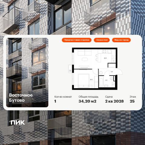 Продаётся 1-комн. квартира площадью 33,3 кв.м на 20 этаже 25 этажного дома (Корпус 48, Секция 4) проекта ПИК Восточное Бутово. Светлый просторный подъезд на уровне земли, функциональная планировка, большие окна, предчистовая отделка. Жилой квартал "Восточное Бутово" расположен в 5 км от МКАД по Симферопольскому шоссе, в Ленинском районе Московской области. Это экологически благоприятное место по соседству с Бутовским лесопарком. В 25 минутах на машине - станции метро и МЦД "Бутово". В "Восточном Бутово" уже открылись пять детских садов из десяти запланированных и одна школа из четырёх. Внутри квартала будет две поликлиники, одна из которых уже работает. В проекте два пешеходных бульвара - по одному из них уже можно гулять и кататься на велосипеде. В закрытых дворах-парках не будет автомобилей - мы построим многоуровневый паркинг, чтобы сделать район ещё более комфортным и безопасным для жителей. Артикул 641561 (Застройщик ООО "Лотан")