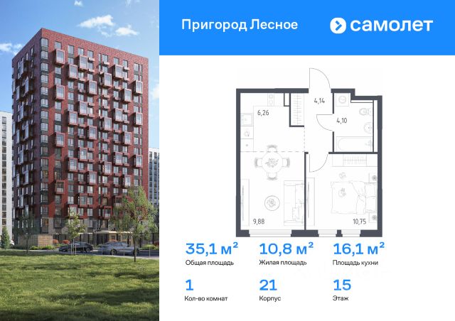 Строим кварталы для жизни с заботой о будущем. Предлагается 1-комнатная квартира комфорт-класса 35,86 кв.м в корпусе 19 на 11 этаже, в ЖК "Пригород Лесное" Квартира без отделки. Доступность опции "отделка" и возможность комплектации мебелью и декором уточняйте у застройщика. Приобрести квартиру возможно по специальным акциям от застройщика, с текущими условиями акций можно ознакомиться в блоке "Акций". Цена динамическая и может отличаться, уточняйте актуальность у застройщика. Жилой комплекс "Пригород Лесное" находится в 7 км от МКАДа. Все корпуса проекта не выше 17 этажей, в отделке фасадов используется кирпич в природных оттенках: сером, коричневом, черном и белом. Жизнь рядом с лесом — это новые впечатления каждый день. Здесь можно устраивать пикники на солнечных лужайках, ходить за ягодами, кататься на велосипедах по извилистым дорожкам. Для жителей — собственные детские сады и школы, поликлиника и больница, паркинги подземные с зарядками для электрокаров, отдельные многоэтажные паркинги и плоскостные парковки. Стройте комфортную и счастливую жизнь в "Пригороде Лесное" уже сейчас. "Пригород Лесное" — это: 1. 15 минут на автомобиле до станции метро "Домодедовская" и 12 минут на автомобиле до МКАДа 2. 8 минут на автомобиле до Каширского шоссе и трассы А-105 3. Коробовский и Богдановский лес, река Пахра и Большой Людовинский пруд у дома 4. Экомаршрут в Коробовском лесопарке рядом с домом, который соединит кварталы: "Пригород Лесное", "Горки Парк" и "Богдановский Лес" 5. Выход в лес по благоустроенным экотропам 6. Уже открыто 3 школы, 5 детских садов и поликлиника 7. Запланированные 17 детских садов и 9 школ, поликлиника и больница 8. Запланированное строительство культурно-досугового и торгового центра, спортивный комплекс и бассейн 9. Детские площадки с безопасным покрытием и велодорожки на территории проекта 10. Собственный ландшафтный парк и бульвар 11. Спортхаб на территории проекта 12. Паркинги: подземные с зарядками для электрокаров, отдельные многоэтажные и плоскостные 13. Колясочные и кладовые помещения