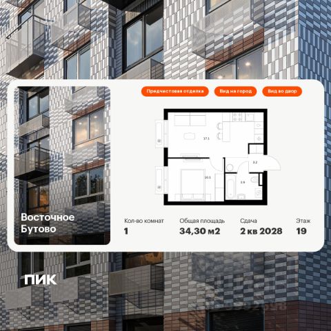 Продаётся 1-комн. квартира площадью 32,1 кв.м на 12 этаже 15 этажного дома (Корпус 47, Секция 2) проекта ПИК Восточное Бутово. Светлый просторный подъезд на уровне земли, функциональная планировка, большие окна, предчистовая отделка. Жилой квартал "Восточное Бутово" расположен в 5 км от МКАД по Симферопольскому шоссе, в Ленинском районе Московской области. Это экологически благоприятное место по соседству с Бутовским лесопарком. В 25 минутах на машине - станции метро и МЦД "Бутово". В "Восточном Бутово" уже открылись пять детских садов из десяти запланированных и одна школа из четырёх. Внутри квартала будет две поликлиники, одна из которых уже работает. В проекте два пешеходных бульвара - по одному из них уже можно гулять и кататься на велосипеде. В закрытых дворах-парках не будет автомобилей - мы построим многоуровневый паркинг, чтобы сделать район ещё более комфортным и безопасным для жителей. Артикул 642417 (Застройщик ООО "Лотан")