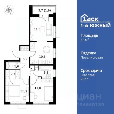ТОЛЬКО 4 ДНЯ ДО 10.02 • Дополнительная скидка 10% • Ставка 10% по стандартной ипотеке для всех без наценок • Ставка 3,5% по семейной ипотеке Успейте купить выгодно! Прямая продажа от застройщика! Жилой Комплекс класса Комфорт Плюс. Продаётся 1-к квартира номер 135 общей площадью 37.9 кв.м. на 11-м этаже 25 этажного здания. Отделка Whitebox. Цена с учётом скидки. Особенности квартиры: - МЦД-5 в пешей доступности - Квартал с южным садом - Свои 3 детских сада и 2 большие школы - Линейная планировка - максимальная функциональность и удобство. - Просторная мягкая зона - комфорт и уют для отдыха всей семьи. - Возможность добавить спальное место - дополнительный комфорт для гостей. - Гардеробная - удобство для хранения и организации вещей. - Лоджия - уютное место для отдыха и тишины. Квартира с предчистовой отделкой (White box). Вам не придется заниматься черновыми и трудоёмкими работы, а чистовую отделку и дизайн - сделайте на свой вкус. Информация о комплексе: Одно из преимуществ проектов 1- ДСК большие застекленные лоджии. Другое преимущество честный евро-формат. Во всем проекте предусмотрена система Умный дом. В состав устанавливаемого пакета устройств входит: WiFi реле для управления группами потребителей, беспроводной кран перекрытия с эл. приводом, беспроводной сенсор протечки, Яндекс Станция Мини. Его расположение можно назвать удачным за счет транспортной доступности и близости к природным объектам. По соседству лес, а в каждом дворе плодовые деревья. Весной квартал окутывает бело-розовое облако: это цветут яблони, груши, сливы. К августу в воздух наполняется ароматом созревших плодов. Зимой среди покрытых инеем деревьев протянулась лыжня. Транспортная доступность: - Общественный транспорт: Действующая ж/д станция Булатниково (в перспективе будущая МДЦ D5) в пешей доступности, всего 10-12 минут. - Личный автотранспорт: Удобный выезд на трассу М4-Дон в сторону Москвы и области 850 м, до МКАД - 1 км Внутренняя инфраструктура: Красивые продуманные подъезды - еще одно преимущество проекта 1-й Южный. Вход в сквозные подъезды есть и с улицы, и со двора. Благодаря сплошному остеклению в них всегда светло и уютно. Подъезды расположены на уровне земли, поэтому и молодым родителям с коляской, и жильцам с ограниченными возможностями вход и выход неудобств не доставят. В помещении предусмотрено место под стойку ресепшен с выводом инженерных сетей. Если жильцы решат на общем собрании, что необходим охранник или консьерж, организовать для них рабочее место можно быстро и с минимальными затратами. В подъездах предусмотрены уборные для детей и взрослых. Колясочные в каждом подъезде позволяют поддерживать порядок и чистоту на этажах. На случай прогулки с четвероногим питомцем в непогоду в подъездах устроены лапомойки. Во дворах и на общественных территориях 1-ого Южного столько всего интересного для юных обитателей. Собственные 3 детских сада и 2 больших школы буквально под окнами Изюминка проекта - пешеходный бул Купить 1-комнатную квартиру с отделкой в Видном.