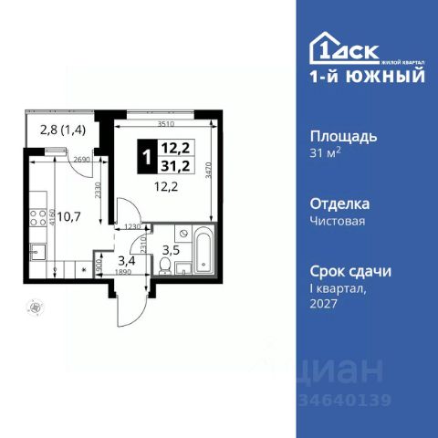 Продаётся 1-комнатная квартира в сданном доме (Ново-Молоковский, 1 (Корпус 13)), срок сдачи: IV-кв. 2024, общей площадью 37.8 кв.м., на 6 этаже. Расположение, транспортная доступность
