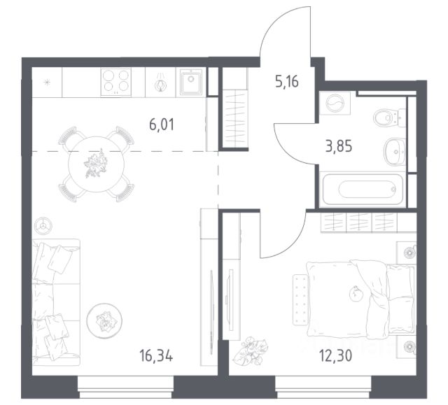 Продаётся 1-комнатная квартира 328, площадью 34,63 м², на 7 этаже в ЖК "Живописный" корпус 1. Стоимость — от 8966164 руб. Квартира с отделкой, планировка односторонняя, окна на улицу.