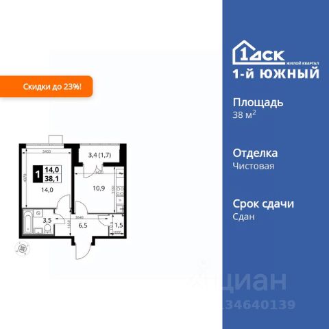 Прямая продажа от застройщика! Жилой Комплекс класса Комфорт Плюс. Продаётся 1-к квартира номер 455 общей площадью 38 кв.м. на 18-м этаже 24 этажного здания. Чистовая отделка. Цена с учётом скидки. Особенности квартиры: - МЦД-5 в пешей доступности - Квартал с южным садом - Свои 3 детских сада и 2 большие школы - Линейная планировка - максимальная функциональность и удобство. - Просторная мягкая зона - комфорт и уют для отдыха всей семьи. - Возможность добавить спальное место - дополнительный комфорт для гостей. - Гардеробная - удобство для хранения и организации вещей. - Лоджия - уютное место для отдыха и тишины. Информация о комплексе: Одно из преимуществ проектов 1- ДСК большие застекленные лоджии. Другое преимущество честный евро-формат. Во всем проекте предусмотрена система Умный дом. В состав устанавливаемого пакета устройств входит: WiFi реле для управления группами потребителей, беспроводной кран перекрытия с эл. приводом, беспроводной сенсор протечки, Яндекс Станция Мини. Его расположение можно назвать удачным за счет транспортной доступности и близости к природным объектам. По соседству лес, а в каждом дворе плодовые деревья. Весной квартал окутывает бело-розовое облако: это цветут яблони, груши, сливы. К августу в воздух наполняется ароматом созревших плодов. Зимой среди покрытых инеем деревьев протянулась лыжня. Транспортная доступность: - Общественный транспорт: Действующая ж/д станция Булатниково (в перспективе будущая МДЦ D5) в пешей доступности, всего 10-12 минут. - Личный автотранспорт: Удобный выезд на трассу М4-Дон в сторону Москвы и области 850 м, до МКАД - 1 км Внутренняя инфраструктура: Красивые продуманные подъезды - еще одно преимущество проекта 1-й Южный. Вход в сквозные подъезды есть и с улицы, и со двора. Благодаря сплошному остеклению в них всегда светло и уютно. Подъезды расположены на уровне земли, поэтому и молодым родителям с коляской, и жильцам с ограниченными возможностями вход и выход неудобств не доставят. В помещении предусмотрено место под стойку ресепшен с выводом инженерных сетей. Если жильцы решат на общем собрании, что необходим охранник или консьерж, организовать для них рабочее место можно быстро и с минимальными затратами. В подъездах предусмотрены уборные для детей и взрослых. Колясочные в каждом подъезде позволяют поддерживать порядок и чистоту на этажах. На случай прогулки с четвероногим питомцем в непогоду в подъездах устроены лапомойки. Во дворах и на общественных территориях 1-ого Южного столько всего интересного для юных обитателей. Собственные 3 детских сада и 2 больших школы буквально под окнами Изюминка проекта - пешеходный бульвар-дендрарий, он идеален для семейных прогулок. По сторонам прогулочной зоны разместились точки для самых разнообразных активностей. Центральная площадь на бульваре предназначена для проведения всесезонных мероприятий, объединяющих жильцов.
