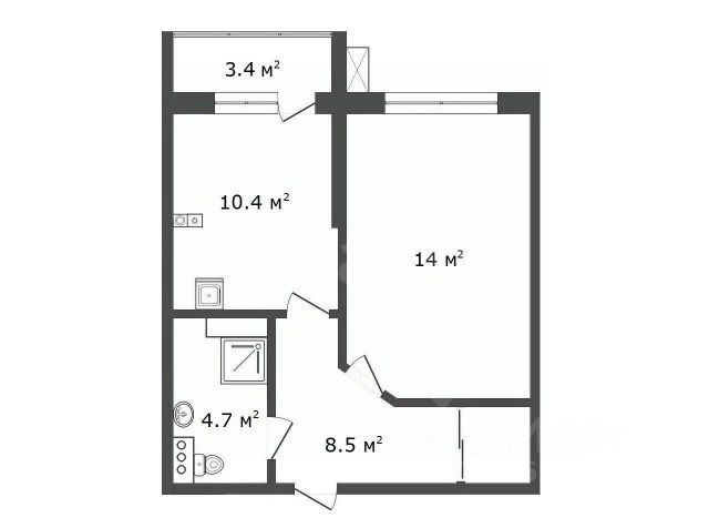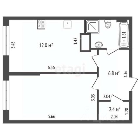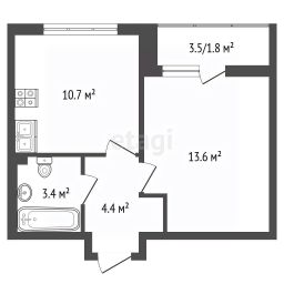 Площадь квартиры 32,3 кв.м, просторная кухня 10,8 кв.м, комната 13,8, лоджия 3,8 кв.м.