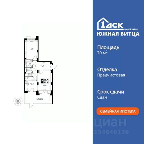 Прямая продажа от застройщика! Семейный жилой район класса Комфорт Плюс Продаётся 2-к квартира номер 506 общей площадью 59.1 кв.м. на 19-м этаже 22 этажного здания. Предчистовая отделка. Особенности квартиры: - Линейная планировка - максимальная функциональность и удобство. - Гостевой санузел - комфорт и удобство для ваших гостей. - Раздельный санузел - больше удобства для всех членов семьи. - Просторная кухня - место для семейных ужинов и кулинарных экспериментов. - Гардеробная - удобство для хранения и организации вещей. - Лоджия - уютное место для отдыха и тишины. Квартира с предчистовой отделкой (White box). Вам не придется заниматься черновыми и трудоёмкими работы, а чистовую отделку и дизайн - сделайте на свой вкус. Информация о комплексе: Сочетание свободного перемещения по внутреннней территории без машин и ощущения абсолютной безопасности благодаря надежным ограждениям - вот что отличает ЖК Южная Битца. На территории комплекса созданы все условия как для активного образа жизни, так и для спокойного времяпрепровождения. Свободно перемещайтесь по внутренней территории в безбарьерной среде! Продуманное зонирование во дворах позволяет отделить тихие зоны для родителей со спящими младенцами и тех, кто хочет почитать на свежем воздухе, от шумных игровых зон. Игровые зоны учитывают возраст детей. Площадки для детей старшего возраста вынесены за пределы дворов. Ощущение уютного дома должно начинаться с подъезда. Мы постарались предусмотреть все нюансы, чтобы наши лифты отвечали самым строгим современным требованиям. А наличие кладовых позволит вам поддерживать идеальный порядок и уют в вашей квартире! Транспортная доступность: В 3 км от МКАД в нескольких минутах езды до трех станций метро: Аннино, Бульвар Дмитрия Донского, улица Старокочаловская и станции МЦД2 - жд Бутово. Внутренняя инфраструктура: Для жителей жилого района "Южная Битца" доступна развитая инфраструктура близлежащих московских районов Чертаново, Южное, Бирюлёво Западное, Северное Бутово и Южное Бутово. Множество образовательных учреждений, объекты здравоохранения, торговые и развлекательные центры, кинотеатры, кафе, рестораны, парки.