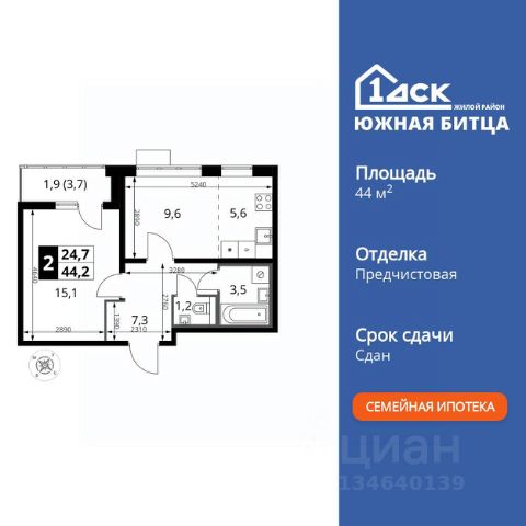 Прямая продажа от застройщика! Семейный жилой район класса Комфорт Плюс Продаётся 2-к квартира номер 67 общей площадью 44.4 кв.м. на 11-м этаже 22 этажного здания. Отделка Whitebox. Особенности квартиры: - Линейная планировка - максимальная функциональность и удобство. - Увеличенное количество окон - дополнительное освещение и свежий воздух. - Гостевой санузел - комфорт и удобство для ваших гостей. - Раздельный санузел - больше удобства для всех членов семьи. - Евроформат - просторное и удобное жилье с отличной планировкой. - Ниша под шкаф - компактное и удобное место для вещей. - Лоджия - уютное место для отдыха и тишины. Квартира с предчистовой отделкой (White box). Вам не придется заниматься черновыми и трудоёмкими работы, а чистовую отделку и дизайн - сделайте на свой вкус. Информация о комплексе: Сочетание свободного перемещения по внутреннней территории без машин и ощущения абсолютной безопасности благодаря надежным ограждениям - вот что отличает ЖК Южная Битца. На территории комплекса созданы все условия как для активного образа жизни, так и для спокойного времяпрепровождения. Свободно перемещайтесь по внутренней территории в безбарьерной среде! Продуманное зонирование во дворах позволяет отделить тихие зоны для родителей со спящими младенцами и тех, кто хочет почитать на свежем воздухе, от шумных игровых зон. Игровые зоны учитывают возраст детей. Площадки для детей старшего возраста вынесены за пределы дворов. Ощущение уютного дома должно начинаться с подъезда. Мы постарались предусмотреть все нюансы, чтобы наши лифты отвечали самым строгим современным требованиям. А наличие кладовых позволит вам поддерживать идеальный порядок и уют в вашей квартире! Транспортная доступность: В 3 км от МКАД в нескольких минутах езды до трех станций метро: Аннино, Бульвар Дмитрия Донского, улица Старокочаловская и станции МЦД2 - жд Бутово. Внутренняя инфраструктура: Для жителей жилого района "Южная Битца" доступна развитая инфраструктура близлежащих московских районов Чертаново, Южное, Бирюлёво Западное, Северное Бутово и Южное Бутово. Множество образовательных учреждений, объекты здравоохранения, торговые и развлекательные центры, кинотеатры, кафе, рестораны, парки.