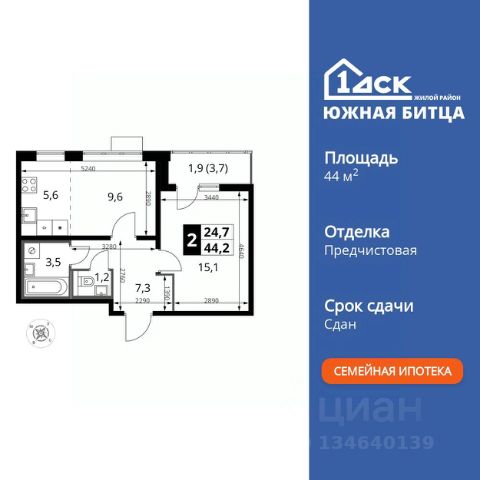 Прямая продажа от застройщика! Семейный жилой район класса Комфорт Плюс Продаётся 2-к квартира номер 243 общей площадью 52.9 кв.м. на 21-м этаже 22 этажного здания. Отделка Whitebox. Цена с учётом скидки. Особенности квартиры: - Линейная планировка - максимальная функциональность и удобство. - Раздельный санузел - больше удобства для всех членов семьи. - Просторная кухня - место для семейных ужинов и кулинарных экспериментов. - Гардеробная - удобство для хранения и организации вещей. - Лоджия - уютное место для отдыха и тишины. - Панорамное остекление лоджии - открывает вид на окружающий мир. Квартира с предчистовой отделкой (White box). Вам не придется заниматься черновыми и трудоёмкими работы, а чистовую отделку и дизайн - сделайте на свой вкус. Информация о комплексе: Сочетание свободного перемещения по внутреннней территории без машин и ощущения абсолютной безопасности благодаря надежным ограждениям - вот что отличает ЖК Южная Битца. На территории комплекса созданы все условия как для активного образа жизни, так и для спокойного времяпрепровождения. Свободно перемещайтесь по внутренней территории в безбарьерной среде! Продуманное зонирование во дворах позволяет отделить тихие зоны для родителей со спящими младенцами и тех, кто хочет почитать на свежем воздухе, от шумных игровых зон. Игровые зоны учитывают возраст детей. Площадки для детей старшего возраста вынесены за пределы дворов. Ощущение уютного дома должно начинаться с подъезда. Мы постарались предусмотреть все нюансы, чтобы наши лифты отвечали самым строгим современным требованиям. А наличие кладовых позволит вам поддерживать идеальный порядок и уют в вашей квартире! Транспортная доступность: В 3 км от МКАД в нескольких минутах езды до трех станций метро: Аннино, Бульвар Дмитрия Донского, улица Старокочаловская и станции МЦД2 - жд Бутово. Внутренняя инфраструктура: Для жителей жилого района "Южная Битца" доступна развитая инфраструктура близлежащих московских районов Чертаново, Южное, Бирюлёво Западное, Северное Бутово и Южное Бутово. Множество образовательных учреждений, объекты здравоохранения, торговые и развлекательные центры, кинотеатры, кафе, рестораны, парки. Продается 2-комнатная квартира элитные в городском округе Ленинском Московской области.