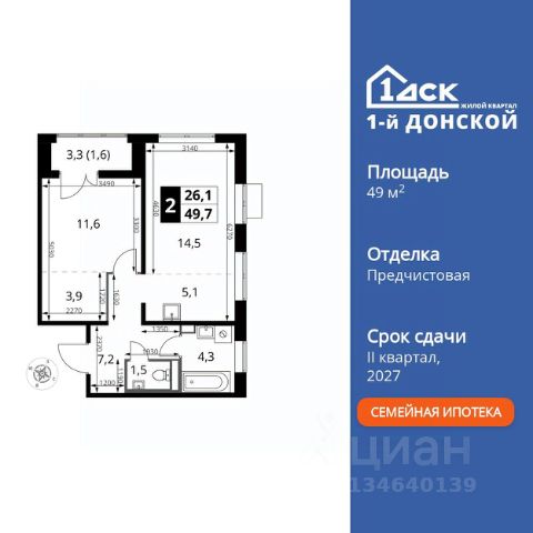 Продаётся 2-к квартира номер 617 общей площадью 49.7 кв.м. на 14-м этаже 24 этажного здания. Предчистовая отделка. Цена с учётом скидки. Особенности квартиры: - Мастер-зона с гардеробной. Просторное место для отдыха и удобного хранения вещей. - Угловая планировка - больше пространства для ваших идей. - Окно в ванной - натуральное освещение для уюта и комфорта. - Увеличенное количество окон - дополнительное освещение и свежий воздух. - Евроформат - просторное и удобное жилье с отличной планировкой. - Возможность добавить спальное место - дополнительный комфорт для гостей. - Гардеробная - удобство для хранения и организации вещей. - Ниша под шкаф - компактное и удобное место для вещей. - Лоджия - уютное место для отдыха и тишины. Квартира с предчистовой отделкой. Вам не придется заниматься черновыми и трудоёмкими работы, а чистовую отделку и дизайн - сделайте на свой вкус. Прямая продажа от застройщика! Жилой Комплекс класса Комфорт Плюс. Продаётся 2-к квартира номер 617 общей площадью 49.7 кв.м. на 14-м этаже 24 этажного здания. - Мастер-зона с гардеробной. Просторное место для отдыха и удобного хранения вещей. - Угловая планировка - больше пространства для ваших идей. - Окно в ванной - натуральное освещение для уюта и комфорта. - Увеличенное количество окон - дополнительное освещение и свежий воздух. - Евроформат - просторное и удобное жилье с отличной планировкой. - Возможность добавить спальное место - дополнительный комфорт для гостей. - Гардеробная - удобство для хранения и организации вещей. - Ниша под шкаф - компактное и удобное место для вещей. - Лоджия - уютное место для отдыха и тишины. Квартира с предчистовой отделкой. Вам не придется заниматься черновыми и трудоёмкими работы, а чистовую отделку и дизайн - сделайте на свой вкус. ЖК "1-й Донской" в 7 км от МКАД: гармония городского комфорта и природы. Квартиры на 2-3 стороны света, форма секций и разная этажность создают динамичную архитектуру. Тёплая палитра фасадов и подсветка подчеркивают образ. Рядом - Ермолинский парк, Видновский лесопарк и Жуковский парк. Природа воздействует на все уровни восприятия: от видов до звуков и ароматов. Идеальный баланс для жизни в гармонии с окружающей средой. Комплекс удобно расположен в 7 км от МКАД по трассе М-4 Дон (через Видное). Расстояние до Каширского шоссе составляет 12 км. Добраться до метро и центра Москвы позволяет развитая сеть маршрутов общественного наземного транспорта. Действующая ж/д станция Калинина Павелецкого направления в 15-17 минутах ходьбы (МЦД-5 в 2025-2026 гг). "1-й Донской": продуманная среда в развивающемся районе. На территории - муниципальные школа и 2 детских сада, поликлиника, торговый центр с площадью для мероприятий. Сеть пешеходных маршрутов ведёт к магазинам и кафе, отделённым от дорог зелёными фито-стенами. Сквозные подъезды с панорамным остеклением и входами с улицы и двора наполнены светом. Всё для комфортной жизни в шаговой доступности, от повседневных нужд