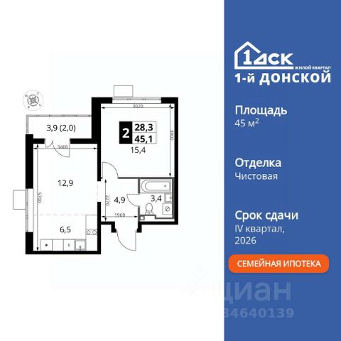 Продаётся 2-к квартира номер 193 общей площадью 45.1 кв.м. на 21-м этаже 24 этажного здания. Чистовая отделка. Цена с учётом скидки. Особенности квартиры: - Просторная спальня, в которой можно разместить большую кровать. - Угловая планировка - больше пространства для ваших идей. - Евроформат - просторное и удобное жилье с отличной планировкой. - Кухня-гостиная - идеальное пространство для встреч с близкими. - Лоджия - уютное место для отдыха и тишины. Квартира с чистовой отделкой. Раскройте свою индивидуальность в создании своего уникального проекта, а трудоемкий ремонт мы возьмем на себя! Вы идете в ногу со временем и предпочитаете современные, универсальные дизайнерские решения? Или вы любитель строгой лаконичной классики? Тогда наши интерьеры придутся вам по душе! Выбирайте то, что ближе лично Вам и реализуйте свои задумки вместе с нами! Прямая продажа от застройщика! Жилой Комплекс класса Комфорт Плюс. Продаётся 2-к квартира номер 193 общей площадью 45.1 кв.м. на 21-м этаже 24 этажного здания. - Просторная спальня, в которой можно разместить большую кровать. - Угловая планировка - больше пространства для ваших идей. - Евроформат - просторное и удобное жилье с отличной планировкой. - Кухня-гостиная - идеальное пространство для встреч с близкими. - Лоджия - уютное место для отдыха и тишины. Квартира с чистовой отделкой. Раскройте свою индивидуальность в создании своего уникального проекта, а трудоемкий ремонт мы возьмем на себя! Вы идете в ногу со временем и предпочитаете современные, универсальные дизайнерские решения? Или вы любитель строгой лаконичной классики? Тогда наши интерьеры придутся вам по душе! Выбирайте то, что ближе лично Вам и реализуйте свои задумки вместе с нами! ЖК "1-й Донской" в 7 км от МКАД: гармония городского комфорта и природы. Квартиры на 2-3 стороны света, форма секций и разная этажность создают динамичную архитектуру. Тёплая палитра фасадов и подсветка подчеркивают образ. Рядом - Ермолинский парк, Видновский лесопарк и Жуковский парк. Природа воздействует на все уровни восприятия: от видов до звуков и ароматов. Идеальный баланс для жизни в гармонии с окружающей средой. Комплекс удобно расположен в 7 км от МКАД по трассе М-4 Дон (через Видное). Расстояние до Каширского шоссе составляет 12 км. Добраться до метро и центра Москвы позволяет развитая сеть маршрутов общественного наземного транспорта. Действующая ж/д станция Калинина Павелецкого направления в 15-17 минутах ходьбы (МЦД-5 в 2025-2026 гг). "1-й Донской": продуманная среда в развивающемся районе. На территории - муниципальные школа и 2 детских сада, поликлиника, торговый центр с площадью для мероприятий. Сеть пешеходных маршрутов ведёт к магазинам и кафе, отделённым от дорог зелёными фито-стенами. Сквозные подъезды с панорамным остеклением и входами с улицы и двора наполнены светом. Всё для комфортной жизни в шаговой доступности, от повседневных нужд до общественных пространств.