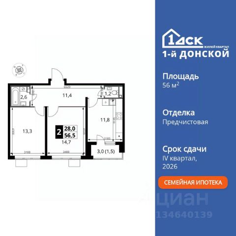 Продаётся 2-к квартира номер 759 общей площадью 56.5 кв.м. на 8-м этаже 24 этажного здания. Предчистовая отделка. Цена с учётом скидки. Особенности квартиры: - Просторная спальня, в которой можно разместить большую кровать. - Линейная планировка - максимальная функциональность и удобство. - Раздельный санузел - больше удобства для всех членов семьи. - Просторная кухня - место для семейных ужинов и кулинарных экспериментов. - Лоджия - уютное место для отдыха и тишины. Квартира с предчистовой отделкой. Вам не придется заниматься черновыми и трудоёмкими работы, а чистовую отделку и дизайн - сделайте на свой вкус. Прямая продажа от застройщика! Жилой Комплекс класса Комфорт Плюс. Продаётся 2-к квартира номер 759 общей площадью 56.5 кв.м. на 8-м этаже 24 этажного здания. - Просторная спальня, в которой можно разместить большую кровать. - Линейная планировка - максимальная функциональность и удобство. - Раздельный санузел - больше удобства для всех членов семьи. - Просторная кухня - место для семейных ужинов и кулинарных экспериментов. - Лоджия - уютное место для отдыха и тишины. Квартира с предчистовой отделкой. Вам не придется заниматься черновыми и трудоёмкими работы, а чистовую отделку и дизайн - сделайте на свой вкус. ЖК "1-й Донской" в 7 км от МКАД: гармония городского комфорта и природы. Квартиры на 2-3 стороны света, форма секций и разная этажность создают динамичную архитектуру. Тёплая палитра фасадов и подсветка подчеркивают образ. Рядом - Ермолинский парк, Видновский лесопарк и Жуковский парк. Природа воздействует на все уровни восприятия: от видов до звуков и ароматов. Идеальный баланс для жизни в гармонии с окружающей средой. Комплекс удобно расположен в 7 км от МКАД по трассе М-4 Дон (через Видное). Расстояние до Каширского шоссе составляет 12 км. Добраться до метро и центра Москвы позволяет развитая сеть маршрутов общественного наземного транспорта. Действующая ж/д станция Калинина Павелецкого направления в 15-17 минутах ходьбы (МЦД-5 в 2025-2026 гг). "1-й Донской": продуманная среда в развивающемся районе. На территории - муниципальные школа и 2 детских сада, поликлиника, торговый центр с площадью для мероприятий. Сеть пешеходных маршрутов ведёт к магазинам и кафе, отделённым от дорог зелёными фито-стенами. Сквозные подъезды с панорамным остеклением и входами с улицы и двора наполнены светом. Всё для комфортной жизни в шаговой доступности, от повседневных нужд до общественных пространств.