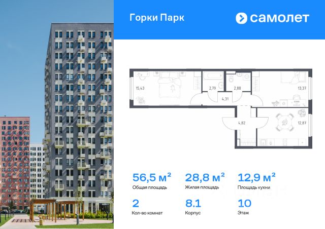 Строим кварталы для жизни с заботой о будущем. Предлагается 2-комнатная квартира комфорт-класса 55,1 кв.м в корпусе 8.2 на 10 этаже, в ЖК "Горки Парк" Квартира без отделки. Доступность опции "отделка" и возможность комплектации мебелью и декором уточняйте у застройщика. Приобрести квартиру возможно по специальным акциям от застройщика, с текущими условиями акций можно ознакомиться в блоке "Акций". Цена динамическая и может отличаться, уточняйте актуальность у застройщика. Уединенный жилой комплекс, где хочется остаться. До МКАДа всего 10 минут на авто, а прямо рядом с домами есть лес — идеально для прогулок, занятий спортом и медитаций. Фасады 1117-этажных корпусов дополняют яркие вставки — каждый дом особенный. На территории проекта появятся ФОК и поликлиника, детские сады и школы. Наслаждаться счастливой жизнью в квартале можно уже сейчас — здесь есть готовые дома, но при этом появляются и новые корпуса. "Горки Парк" — это: 1. 10 минут на машине до МКАДа 2. 20 минут на машине до метро "Домодедовская" и 18 минут — до аэропорта Домодедово 3. Пешеходные бульвары и пространства для отдыха 4. Выход в лесопарк с благоустроенными экотропами 5. Приватные дворы без машин 6. Экомаршрут в Коробовском лесопарке рядом с домом, который соединит кварталы: "Пригород Лесное", "Горки Парк" и "Богдановский Лес" 7. Запланировано 3 школы и 6 детских садов 8. Уже построили детский сад и школу со спортивным ядром, где смогут тренироваться жители квартала 9. Поликлиника и спорткомплекс внутри проекта 10. Магазины и кофейни на первых этажах 11. Игровые площадки и воркаут-зона 12. Прогулочная зона рядом с кварталом 13. Спортивно-игровой кластер 14. Площадки для занятий йогой и игры в пинг-понг — в части дворов 15. Рабочий остров и площадка для отдыха — в части дворов 16. Веревочный панда-парк — в будущем 17. Площадка для выгула собак 18. Балконы с панорамным остеклением 19. Увеличенные окна в квартирах 20. Входы на уровне земли 21. Места для хранения велосипедов и колясок