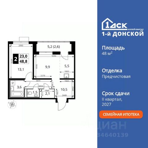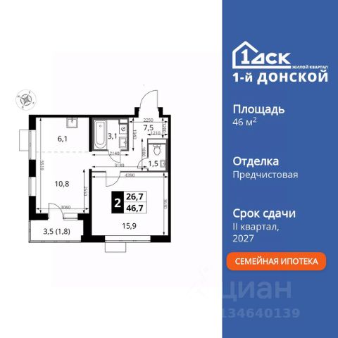 Прямая продажа от застройщика! Жилой Комплекс класса Комфорт Плюс. Продаётся 2-к квартира номер 218 общей площадью 53.1 кв.м. на 11-м этаже 24 этажного здания. Предчистовая отделка. Цена с учётом скидки. Особенности квартиры: - МЦД-5 в пешей доступности - Квартал с собственной набережной - Свои 2 детских сада и школа - Организуем показ в удобное для вас время! - Просторная спальня, в которой можно разместить большую кровать. - Линейная планировка - максимальная функциональность и удобство. - Раздельный санузел - больше удобства для всех членов семьи. - Просторная мягкая зона - комфорт и уют для отдыха всей семьи. - Возможность добавить спальное место - дополнительный комфорт для гостей. - Гардеробная - удобство для хранения и организации вещей. - Просторная лоджия - идеальное место для уютных вечеров. Квартира с предчистовой отделкой. Вам не придется заниматься черновыми и трудоёмкими работы, а чистовую отделку и дизайн - сделайте на свой вкус. Информация о комплексе: ЖК "1-й Донской" в 7 км от МКАД: гармония городского комфорта и природы. Квартиры на 2-3 стороны света, форма секций и разная этажность создают динамичную архитектуру. Тёплая палитра фасадов и подсветка подчеркивают образ. Рядом - Ермолинский парк, Видновский лесопарк и Жуковский парк. Природа воздействует на все уровни восприятия: от видов до звуков и ароматов. Идеальный баланс для жизни в гармонии с окружающей средой. Транспортная доступность: Комплекс удобно расположен в 7 км от МКАД по трассе М-4 Дон (через Видное). Расстояние до Каширского шоссе составляет 12 км. Добраться до метро и центра Москвы позволяет развитая сеть маршрутов общественного наземного транспорта. Действующая ж/д станция Калинина Павелецкого направления в 15-17 минутах ходьбы (МЦД-5 в 2025-2026 гг). Внутренняя инфраструктура: "1-й Донской": продуманная среда в развивающемся районе. На территории - муниципальные школа и 2 детских сада, поликлиника, торговый центр с площадью для мероприятий. Сеть пешеходных маршрутов ведёт к магазинам и кафе, отделённым от дорог зелёными фито-стенами. Сквозные подъезды с панорамным остеклением и входами с улицы и двора наполнены светом. Всё для комфортной жизни в шаговой доступности, от повседневных нужд до общественных пространств. Квартира с предчистовой отделкой - ваш дизайн без черновых работ