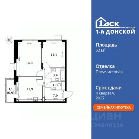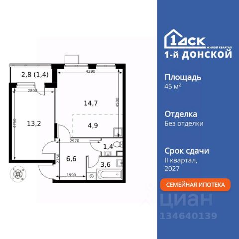 Строим кварталы для жизни с заботой о будущем. Предлагается 2-комнатная квартира комфорт-класса площадью 53,47 кв.м в корпусе 8.2 на 12-м этаже, в жилом комплексе "Горки Парк".