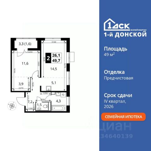 Прямая продажа от застройщика! Жилой Комплекс класса Комфорт Плюс. Продаётся 2-к квартира номер 396 общей площадью 53.4 кв.м. на 13-м этаже 24 этажного здания. Без отделки. Цена с учётом скидки. Особенности квартиры: - МЦД-5 в пешей доступности - Квартал с собственной набережной - Свои 2 детских сада и школа - Организуем показ в удобное для вас время! - Линейная планировка - максимальная функциональность и удобство. - Раздельный санузел - больше удобства для всех членов семьи. - Ниша под шкаф - компактное и удобное место для вещей. - Лоджия - уютное место для отдыха и тишины. Квартира без отделки. Чистый холст для воплощения интерьера вашей мечты. Информация о комплексе: ЖК "1-й Донской" в 7 км от МКАД: гармония городского комфорта и природы. Квартиры на 2-3 стороны света, форма секций и разная этажность создают динамичную архитектуру. Тёплая палитра фасадов и подсветка подчеркивают образ. Рядом - Ермолинский парк, Видновский лесопарк и Жуковский парк. Природа воздействует на все уровни восприятия: от видов до звуков и ароматов. Идеальный баланс для жизни в гармонии с окружающей средой. Транспортная доступность: Комплекс удобно расположен в 7 км от МКАД по трассе М-4 Дон (через Видное). Расстояние до Каширского шоссе составляет 12 км. Добраться до метро и центра Москвы позволяет развитая сеть маршрутов общественного наземного транспорта. Действующая ж/д станция Калинина Павелецкого направления в 15-17 минутах ходьбы (МЦД-5 в 2025-2026 гг). Внутренняя инфраструктура: "1-й Донской": продуманная среда в развивающемся районе. На территории - муниципальные школа и 2 детских сада, поликлиника, торговый центр с площадью для мероприятий. Сеть пешеходных маршрутов ведёт к магазинам и кафе, отделённым от дорог зелёными фито-стенами. Сквозные подъезды с панорамным остеклением и входами с улицы и двора наполнены светом. Всё для комфортной жизни в шаговой доступности, от повседневных нужд до общественных пространств. Квартира без отделки - чистый холст для вашего интерьера.