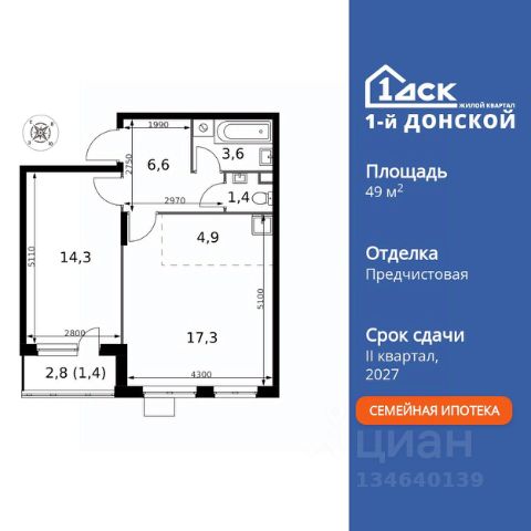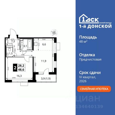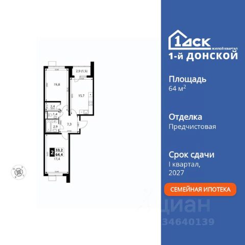 Прямая продажа от застройщика! Жилой Комплекс класса Комфорт Плюс. Продаётся 2-к квартира номер 141 общей площадью 57.4 кв.м. на 14-м этаже 24 этажного здания. Без отделки. Цена с учётом скидки. Особенности квартиры: - МЦД-5 в пешей доступности - Квартал с собственной набережной - Свои 2 детских сада и школа - Организуем показ в удобное для вас время! - Просторная спальня, в которой можно разместить большую кровать. - Угловая планировка - больше пространства для ваших идей. - Увеличенное количество окон - дополнительное освещение и свежий воздух. - Раздельный санузел - больше удобства для всех членов семьи. - Ниша под шкаф - компактное и удобное место для вещей. - Балкон - открытое пространство для отдыха. Квартира без отделки. Чистый холст для воплощения интерьера вашей мечты. Информация о комплексе: ЖК "1-й Донской" в 7 км от МКАД: гармония городского комфорта и природы. Квартиры на 2-3 стороны света, форма секций и разная этажность создают динамичную архитектуру. Тёплая палитра фасадов и подсветка подчеркивают образ. Рядом - Ермолинский парк, Видновский лесопарк и Жуковский парк. Природа воздействует на все уровни восприятия: от видов до звуков и ароматов. Идеальный баланс для жизни в гармонии с окружающей средой. Транспортная доступность: Комплекс удобно расположен в 7 км от МКАД по трассе М-4 Дон (через Видное). Расстояние до Каширского шоссе составляет 12 км. Добраться до метро и центра Москвы позволяет развитая сеть маршрутов общественного наземного транспорта. Действующая ж/д станция Калинина Павелецкого направления в 15-17 минутах ходьбы (МЦД-5 в 2025-2026 гг). Внутренняя инфраструктура: "1-й Донской": продуманная среда в развивающемся районе. На территории - муниципальные школа и 2 детских сада, поликлиника, торговый центр с площадью для мероприятий. Сеть пешеходных маршрутов ведёт к магазинам и кафе, отделённым от дорог зелёными фито-стенами. Сквозные подъезды с панорамным остеклением и входами с улицы и двора наполнены светом. Всё для комфортной жизни в шаговой доступности, от повседневных нужд до общественных пространств. Квартира без отделки - чистый холст для вашего интерьера.