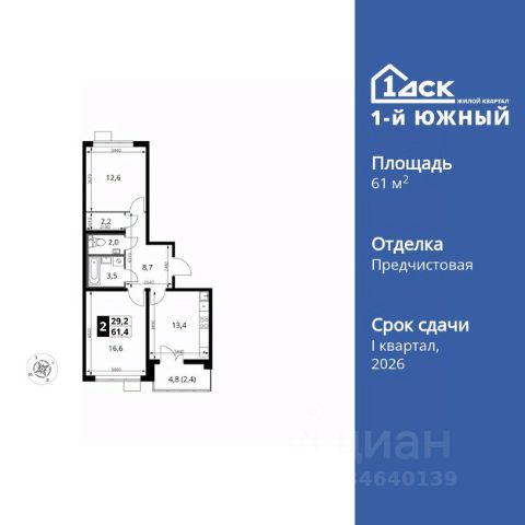 Строим кварталы для жизни с заботой о будущем. Предлагается 2-комнатная квартира комфорт-класса площадью 59,41 кв.м в корпусе 19 на 16-м этаже, в жилом комплексе "Пригород Лесное".