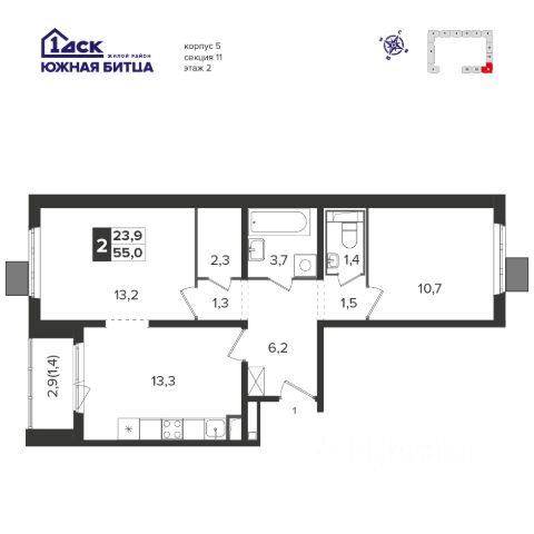 ДОПОЛНИТЕЛЬНАЯ СКИДКА ДО 10% В ОФИСЕ ПРОДАЖ! Прямая продажа от застройщика! Жилой Комплекс класса Комфорт Плюс. Продаётся 2-к квартира номер 263 общей площадью 49.5 кв.м. на 2-м этаже 24 этажного здания. Отделка Whitebox. Особенности квартиры: - МЦД-5 в пешей доступности - Квартал с собственной набережной - Свои 2 детских сада и школа - Просторная спальня, в которой можно разместить большую кровать. - Линейная планировка - максимальная функциональность и удобство. - Раздельный санузел - больше удобства для всех членов семьи. - Евроформат - просторное и удобное жилье с отличной планировкой. - Кухня-гостиная - идеальное пространство для встреч с близкими. - Линейная кухня - функциональность и практичность в одном решении. - Лоджия - уютное место для отдыха и тишины. Квартира с предчистовой отделкой (White box). Вам не придется заниматься черновыми и трудоёмкими работы, а чистовую отделку и дизайн - сделайте на свой вкус. Информация о комплексе: Комплекс 1-й Донской расположен в 7 км от МКАД по трассе М-4 Дон. В нем сочетаются все плюсы комфортной городской среды и природного окружения. В проекте достаточно большой процент квартир, выходящих на 2-3 стороны света. Секции-маяки формируют у зданий визуальную L-форму, что придает застройке структуру и ритмику объемов. На ощущение динамики работает и разная этажность зданий. Теплая цветовая палитра фасадов отражает природу Дона. Вечерами дома преображаются благодаря архитектурной подсветке, выгодно выделяясь на городском фоне. Природа оказывает положительное влияние на человека на всех уровнях восприятия: через зрение, запахи, звуки, тактильные ощущения. Неподалеку от ЖК Первый Донской: Ермолинский парк, Видновский лесопарк, Жуковский парк Транспортная доступность: Комплекс удобно расположен в 7 км от МКАД по трассе М-4 Дон (через Видное). Расстояние до Каширского шоссе составляет 12 км. Добраться до метро и центра Москвы позволяет развитая сеть маршрутов общественного наземного транспорта. Действующая ж/д станция Калинина Павелецкого направления в 15-17 минутах ходьбы (МЦД-5 в 2025-2026 гг). Внутренняя инфраструктура: Проект 1-й Донской соседствует с бурно развивающимся районом, основная инфраструктура которого уже сложилась. В строительстве современных жилых комплексов в округе есть свои плюсы: здесь формируется продуманная и комфортная городская среда. Что касается внутренней инфраструктуры, на территории квартала будут расположены собственные муниципальные 2 детских садика и школа, которые помогут совместить приятное с полезным. Территория комплекса пронизана целой сетью живописных пешеходных маршрутов, позволяющих попасть в любой уголок района. Основные пути, как водится, "торговые". Они проходят вдоль магазинов, кафе и других представителей коммерции и отделяются от проезжей части зеленой "фито" - стеной. Среди крупных социальных объектов предусмотрены своя поликлиника и торговый центр с примыкающей площадью для общественных мероприятий. Уют начинается