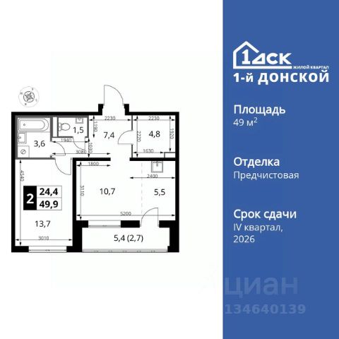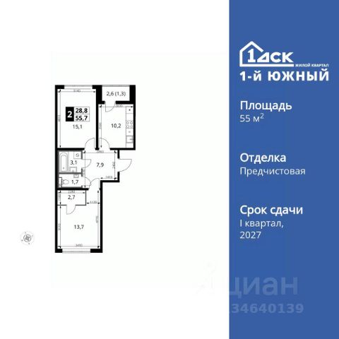 Продаётся 2-комн. квартира площадью 53,7 кв.м на 2 этаже 25 этажного дома (Корпус 55, Секция 1) проекта ПИК Восточное Бутово. Светлый просторный подъезд на уровне земли, функциональная планировка, большие окна, предчистовая отделка. Жилой квартал "Восточное Бутово" расположен в 5 км от МКАД по Симферопольскому шоссе, в Ленинском районе Московской области. Это экологически благоприятное место по соседству с Бутовским лесопарком. В 25 минутах на машине - станции метро и МЦД "Бутово". В "Восточном Бутово" уже открылись пять детских садов из десяти запланированных и одна школа из четырёх. Внутри квартала будет две поликлиники, одна из которых уже работает. В проекте два пешеходных бульвара - по одному из них уже можно гулять и кататься на велосипеде. В закрытых дворах-парках не будет автомобилей - мы построим многоуровневый паркинг, чтобы сделать район ещё более комфортным и безопасным для жителей. Артикул 1044056 (Застройщик ООО "Лотан")