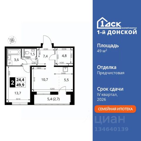 ДОПОЛНИТЕЛЬНАЯ СКИДКА ДО 10% В ОФИСЕ ПРОДАЖ! Прямая продажа от застройщика! Жилой Комплекс класса Комфорт Плюс. Продаётся 2-к квартира номер 533 общей площадью 45 кв.м. на 2-м этаже 24 этажного здания. Без отделки. Особенности квартиры: - МЦД-5 в пешей доступности - Квартал с собственной набережной - Свои 2 детских сада и школа - Просторная спальня, в которой можно разместить большую кровать. - Линейная планировка - максимальная функциональность и удобство. - Евроформат - просторное и удобное жилье с отличной планировкой. - Кухня-гостиная - идеальное пространство для встреч с близкими. - Линейная кухня - функциональность и практичность в одном решении. - Ниша под шкаф - компактное и удобное место для вещей. - Лоджия - уютное место для отдыха и тишины. Информация о комплексе: Комплекс 1-й Донской расположен в 7 км от МКАД по трассе М-4 Дон. В нем сочетаются все плюсы комфортной городской среды и природного окружения. В проекте достаточно большой процент квартир, выходящих на 2-3 стороны света. Секции-маяки формируют у зданий визуальную L-форму, что придает застройке структуру и ритмику объемов. На ощущение динамики работает и разная этажность зданий. Теплая цветовая палитра фасадов отражает природу Дона. Вечерами дома преображаются благодаря архитектурной подсветке, выгодно выделяясь на городском фоне. Природа оказывает положительное влияние на человека на всех уровнях восприятия: через зрение, запахи, звуки, тактильные ощущения. Неподалеку от ЖК Первый Донской: Ермолинский парк, Видновский лесопарк, Жуковский парк Транспортная доступность: Комплекс удобно расположен в 7 км от МКАД по трассе М-4 Дон (через Видное). Расстояние до Каширского шоссе составляет 12 км. Добраться до метро и центра Москвы позволяет развитая сеть маршрутов общественного наземного транспорта. Действующая ж/д станция Калинина Павелецкого направления в 15-17 минутах ходьбы (МЦД-5 в 2025-2026 гг). Внутренняя инфраструктура: Проект 1-й Донской соседствует с бурно развивающимся районом, основная инфраструктура которого уже сложилась. В строительстве современных жилых комплексов в округе есть свои плюсы: здесь формируется продуманная и комфортная городская среда. Что касается внутренней инфраструктуры, на территории квартала будут расположены собственные муниципальные 2 детских садика и школа, которые помогут совместить приятное с полезным. Территория комплекса пронизана целой сетью живописных пешеходных маршрутов, позволяющих попасть в любой уголок района. Основные пути, как водится, "торговые". Они проходят вдоль магазинов, кафе и других представителей коммерции и отделяются от проезжей части зеленой "фито" - стеной. Среди крупных социальных объектов предусмотрены своя поликлиника и торговый центр с примыкающей площадью для общественных мероприятий. Уют начинается с продуманного подъезда. Сквозные подъезды наполнены светом благодаря сплошному остеклению. Вход в них есть и с улицы, и со двора.