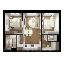 А если не хочется тратить время на ремонт, можно выбрать опцию — с отделкой. Перед тем как отдать ключи, застройщик установит натяжные потолки, поклеит обои под покраску, положит ламинат светлых тонов, а в санузлах — керамическую плитку и керамогранит.