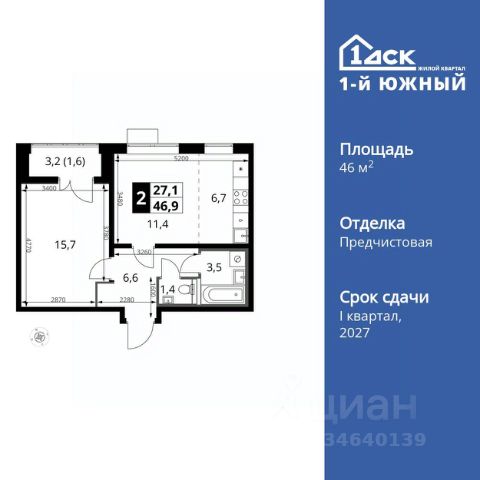 Прямая продажа от застройщика! Жилой Комплекс класса Комфорт Плюс. Продаётся 2-к квартира номер 23 общей площадью 46.9 кв.м. на 7-м этаже 24 этажного здания. Отделка Whitebox. Особенности квартиры: - МЦД-5 в пешей доступности - Квартал с южным садом - Свои 3 детских сада и 2 большие школы - Линейная планировка - максимальная функциональность и удобство. - Раздельный санузел - больше удобства для всех членов семьи. - Евроформат - просторное и удобное жилье с отличной планировкой. - Линейная кухня - функциональность и практичность в одном решении. - Ниша под шкаф - компактное и удобное место для вещей. - Лоджия - уютное место для отдыха и тишины. Квартира с предчистовой отделкой (White box). Вам не придется заниматься черновыми и трудоёмкими работы, а чистовую отделку и дизайн - сделайте на свой вкус. Информация о комплексе: Одно из преимуществ проектов 1- ДСК большие застекленные лоджии. Другое преимущество честный евро-формат. Во всем проекте предусмотрена система Умный дом. В состав устанавливаемого пакета устройств входит: WiFi реле для управления группами потребителей, беспроводной кран перекрытия с эл. приводом, беспроводной сенсор протечки, Яндекс Станция Мини. Его расположение можно назвать удачным за счет транспортной доступности и близости к природным объектам. По соседству лес, а в каждом дворе плодовые деревья. Весной квартал окутывает бело-розовое облако: это цветут яблони, груши, сливы. К августу в воздух наполняется ароматом созревших плодов. Зимой среди покрытых инеем деревьев протянулась лыжня. Транспортная доступность: - Общественный транспорт: Действующая ж/д станция Булатниково (в перспективе будущая МДЦ D5) в пешей доступности, всего 10-12 минут. - Личный автотранспорт: Удобный выезд на трассу М4-Дон в сторону Москвы и области 850 м, до МКАД - 1 км Внутренняя инфраструктура: Красивые продуманные подъезды - еще одно преимущество проекта 1-й Южный. Вход в сквозные подъезды есть и с улицы, и со двора. Благодаря сплошному остеклению в них всегда светло и уютно. Подъезды расположены на уровне земли, поэтому и молодым родителям с коляской, и жильцам с ограниченными возможностями вход и выход неудобств не доставят. В помещении предусмотрено место под стойку ресепшен с выводом инженерных сетей. Если жильцы решат на общем собрании, что необходим охранник или консьерж, организовать для них рабочее место можно быстро и с минимальными затратами. В подъездах предусмотрены уборные для детей и взрослых. Колясочные в каждом подъезде позволяют поддерживать порядок и чистоту на этажах. На случай прогулки с четвероногим питомцем в непогоду в подъездах устроены лапомойки. Во дворах и на общественных территориях 1-ого Южного столько всего интересного для юных обитателей. Собственные 3 детских сада и 2 больших школы буквально под окнами Изюминка проекта - пешеходный бульвар-дендрарий, он идеален для семейных прогулок. По сторонам прогулочной зоны разместились точки для самых разнообразных активностей. Цент