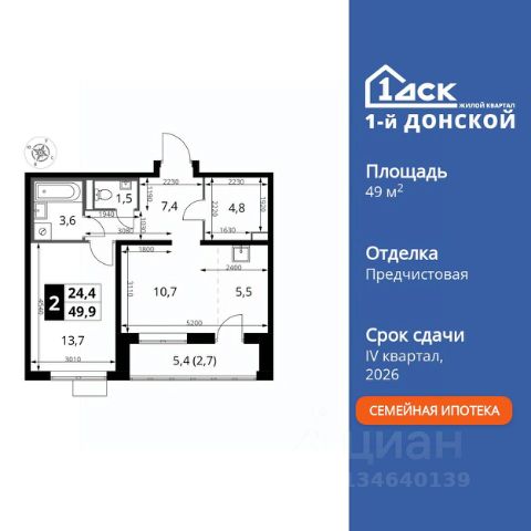 Строим кварталы для жизни с заботой о будущем. Предлагается 2-комнатная квартира комфорт-класса площадью 51,14 кв.м в корпусе 7.3 на 7-м этаже, в жилом комплексе "Богдановский Лес". Застройщик сдает квартиры с отделкой в нескольких вариантах: предчистовая, готовая, улучшенная или вариант без нее. Последний подойдет тем, кто хочет создать свой уникальный интерьер и ничем себя не ограничивать. А если не хочется тратить время на ремонт, можно выбрать опцию — с отделкой. Перед тем как отдать ключи, застройщик установит натяжные потолки, поклеит обои под покраску, положит ламинат светлых тонов, а в санузлах — керамическую плитку и керамогранит. Приобрести квартиру возможно по специальным акциям от застройщика, с текущими условиями акций можно ознакомиться в блоке "Акций". Цена динамическая и может отличаться, уточняйте актуальность у застройщика. "Богдановский Лес" находится в 17 км от МКАДа, но после открытия Южно-Лыткаринской автодороги расстояние уменьшится до 14 км. Рядом с домом — Коробовский лесопарк. Все дома в "Богдановском Лесу" не выше 12 этажей и располагаются в форме полукруга. Такое решение дарит ощущение камерности. На фасадах — кирпич природных оттенков: от белого и бордо до серого и коричневого. В квартале будет все для жизни: поликлиника и спорткомплекс с бассейном, детские сады и школы. За пределами приватных дворов появятся игровые и спортивные кластеры. "Богдановский Лес" — это: 1. До МКАДа — 20 минут на машине, а после открытия Южно-Лыткаринской автодороги — 12 минут 2. До станции метро "Котельники" — 20 минут на машине 3. До станции метро "Домодедовская" — 30 минут на машине 4. Аэропорт Домодедово — в 35 минутах на машине 5. Рядом — лес, реки Пахра и Людовна, Большой Людовинский пруд с зоной отдыха 6. Экомаршрут в Коробовском лесопарке рядом с домом, который соединит кварталы: "Пригород Лесное", "Горки Парк" и "Богдановский Лес" 7. Национальный конный парк "Русь" и парк-отель "Орловский" в 1020 минутах пешком 8. Прогулочный маршрут через лесопарк 9. Монолитные дома комфортной высоты — от 11 до 12 этажей 10. Воркаут-пространства и велопешеходный бульвар 11. Многоуровневые паркинги в пешей доступности 12. В планах открыть еще 3 школы, 4 детских сада, поликлинику, торговый центр, спорткомплекс с бассейном, аквапарк на территории парк-отеля "Орловский"