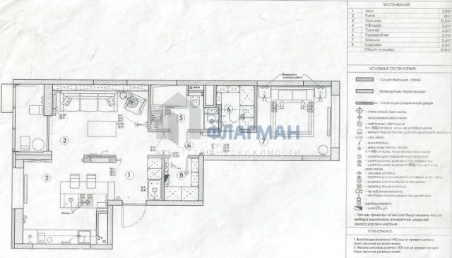 Квартира с кухней-гостиной и двумя спальнями в "Первом квартале". Особенности планировки: балкон, гардеробная, мастер-спальня, предчистовая отделка, разнесённые спальни. квартиры в нашей базе: МТК02-Ж1.8.2.