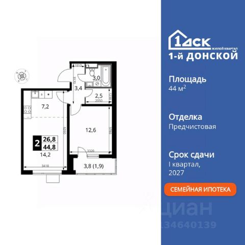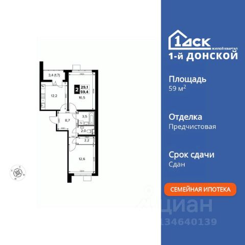 Прямая продажа от застройщика! Жилой Комплекс класса Комфорт Плюс. Продаётся 2-к квартира номер 61 общей площадью 59.4 кв.м. на 9-м этаже 14 этажного здания. Предчистовая отделка. Цена с учётом скидки. Особенности квартиры: - МЦД-5 в пешей доступности - Квартал с собственной набережной - Свои 2 детских сада и школа - Организуем показ в удобное для вас время! - Просторная спальня, в которой можно разместить большую кровать. - Раздельный санузел - больше удобства для всех членов семьи. - Просторная кухня - место для семейных ужинов и кулинарных экспериментов. - Просторная мягкая зона - комфорт и уют для отдыха всей семьи. - Возможность добавить спальное место - дополнительный комфорт для гостей. - Гардеробная - удобство для хранения и организации вещей. - Лоджия - уютное место для отдыха и тишины. Квартира с предчистовой отделкой. Вам не придется заниматься черновыми и трудоёмкими работы, а чистовую отделку и дизайн - сделайте на свой вкус. Информация о комплексе: ЖК "1-й Донской" в 7 км от МКАД: гармония городского комфорта и природы. Квартиры на 2-3 стороны света, форма секций и разная этажность создают динамичную архитектуру. Тёплая палитра фасадов и подсветка подчеркивают образ. Рядом - Ермолинский парк, Видновский лесопарк и Жуковский парк. Природа воздействует на все уровни восприятия: от видов до звуков и ароматов. Идеальный баланс для жизни в гармонии с окружающей средой. Транспортная доступность: Комплекс удобно расположен в 7 км от МКАД по трассе М-4 Дон (через Видное). Расстояние до Каширского шоссе составляет 12 км. Добраться до метро и центра Москвы позволяет развитая сеть маршрутов общественного наземного транспорта. Действующая ж/д станция Калинина Павелецкого направления в 15-17 минутах ходьбы (МЦД-5 в 2025-2026 гг). Внутренняя инфраструктура: "1-й Донской": продуманная среда в развивающемся районе. На территории - муниципальные школа и 2 детских сада, поликлиника, торговый центр с площадью для мероприятий. Сеть пешеходных маршрутов ведёт к магазинам и кафе, отделённым от дорог зелёными фито-стенами. Сквозные подъезды с панорамным остеклением и входами с улицы и двора наполнены светом. Всё для комфортной жизни в шаговой доступности, от повседневных нужд до общественных пространств. Квартира с предчистовой отделкой - ваш дизайн без черновых работ
