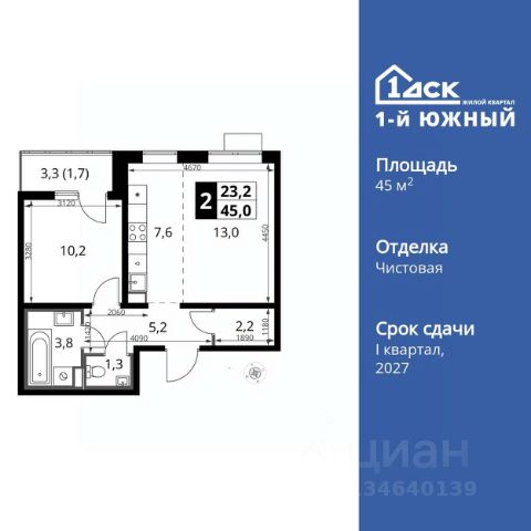 ТОЛЬКО 4 ДНЯ ДО 10.02 • Дополнительная скидка 10% • Ставка 10% по стандартной ипотеке для всех без наценок • Ставка 3,5% по семейной ипотеке Успейте купить выгодно! Прямая продажа от застройщика! Жилой Комплекс класса Комфорт Плюс. Продаётся 2-к квартира номер 844 общей площадью 42 кв.м. на 8-м этаже 24 этажного здания. Чистовая отделка. Цена с учётом скидки. Особенности квартиры: - МЦД-5 в пешей доступности - Квартал с южным садом - Свои 3 детских сада и 2 большие школы - Просторная спальня, в которой можно разместить большую кровать. - Линейная планировка - максимальная функциональность и удобство. - Раздельный санузел - больше удобства для всех членов семьи. - Евроформат - просторное и удобное жилье с отличной планировкой. - Кухня-гостиная - идеальное пространство для встреч с близкими. - Линейная кухня - функциональность и практичность в одном решении. - Ниша под шкаф - компактное и удобное место для вещей. - Лоджия - уютное место для отдыха и тишины. Информация о комплексе: Одно из преимуществ проектов 1- ДСК большие застекленные лоджии. Другое преимущество честный евро-формат. Во всем проекте предусмотрена система Умный дом. В состав устанавливаемого пакета устройств входит: WiFi реле для управления группами потребителей, беспроводной кран перекрытия с эл. приводом, беспроводной сенсор протечки, Яндекс Станция Мини. Его расположение можно назвать удачным за счет транспортной доступности и близости к природным объектам. По соседству лес, а в каждом дворе плодовые деревья. Весной квартал окутывает бело-розовое облако: это цветут яблони, груши, сливы. К августу в воздух наполняется ароматом созревших плодов. Зимой среди покрытых инеем деревьев протянулась лыжня. Транспортная доступность: - Общественный транспорт: Действующая ж/д станция Булатниково (в перспективе будущая МДЦ D5) в пешей доступности, всего 10-12 минут. - Личный автотранспорт: Удобный выезд на трассу М4-Дон в сторону Москвы и области 850 м, до МКАД - 1 км Внутренняя инфраструктура: Красивые продуманные подъезды - еще одно преимущество проекта 1-й Южный. Вход в сквозные подъезды есть и с улицы, и со двора. Благодаря сплошному остеклению в них всегда светло и уютно. Подъезды расположены на уровне земли, поэтому и молодым родителям с коляской, и жильцам с ограниченными возможностями вход и выход неудобств не доставят. В помещении предусмотрено место под стойку ресепшен с выводом инженерных сетей. Если жильцы решат на общем собрании, что необходим охранник или консьерж, организовать для них рабочее место можно быстро и с минимальными затратами. В подъездах предусмотрены уборные для детей и взрослых. Колясочные в каждом подъезде позволяют поддерживать порядок и чистоту на этажах. На случай прогулки с четвероногим питомцем в непогоду в подъездах устроены лапомойки. Во дворах и на общественных территориях 1-ого Южного столько всего интересного для юных обитателей. Собственные 3 детских сада и 2 больших школы буквально под окнами Изюминка